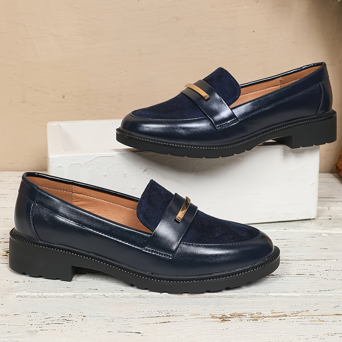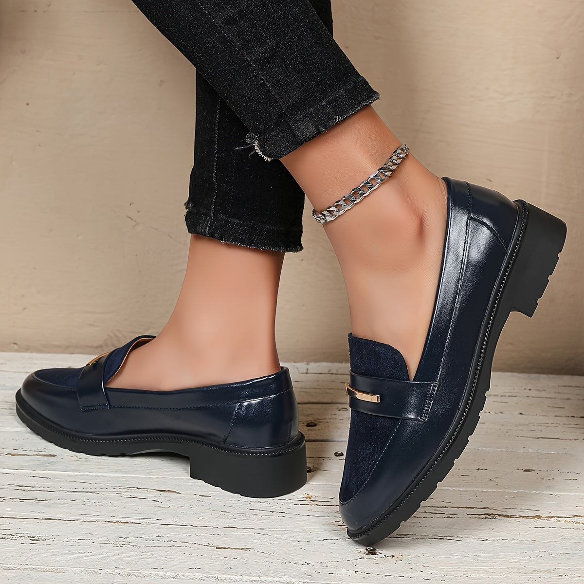 Women's Navy Blue Slip-On Loafers - Comfortable Casual Dress Shoes
