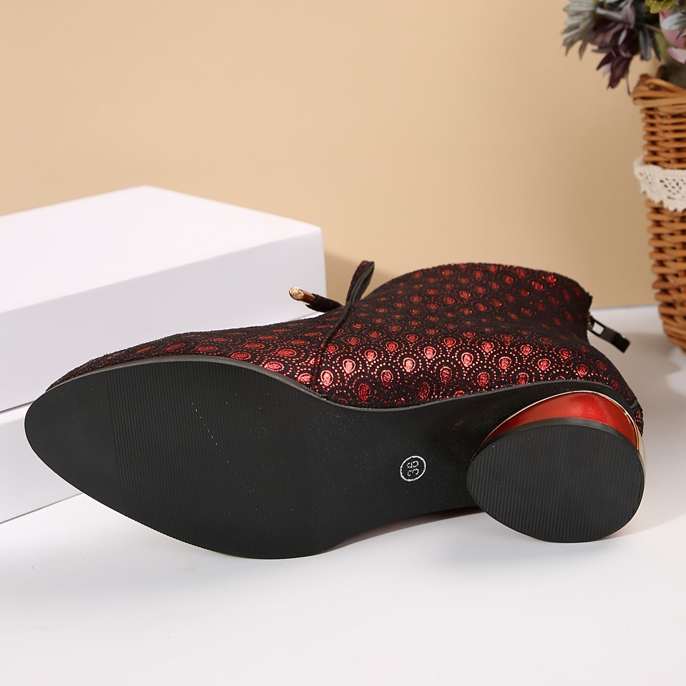 Women's Peacock Print Ankle Boots Chunky Heel Zipper Mid-Heel All-Season