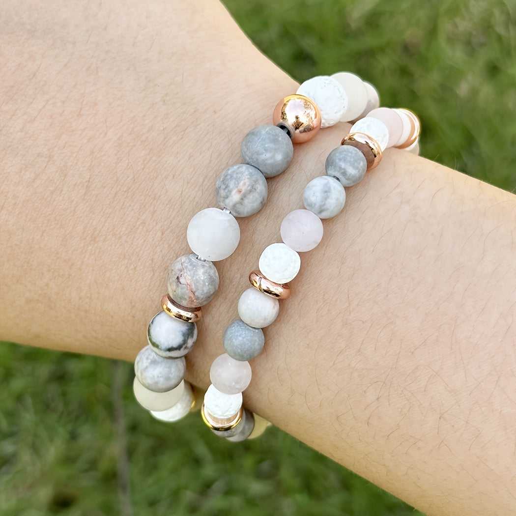 Women's Pink Zebra and Rose Gold Beaded Bracelet Stylish Jewelry Accessory