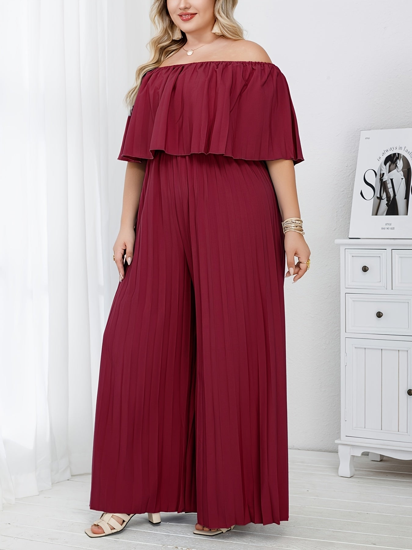 Women's Plus Size Beige One-Shoulder Loose Jumpsuit