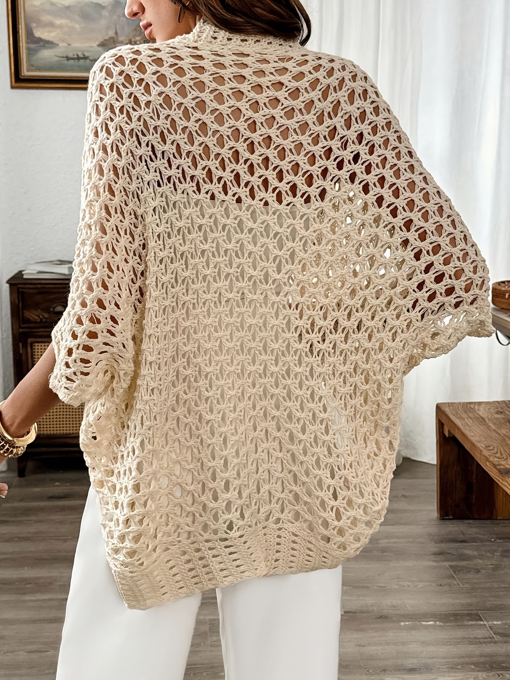 Women's Plus Size Cardigan Slim Fit Lightweight Openwork Sweater for Fall Winter