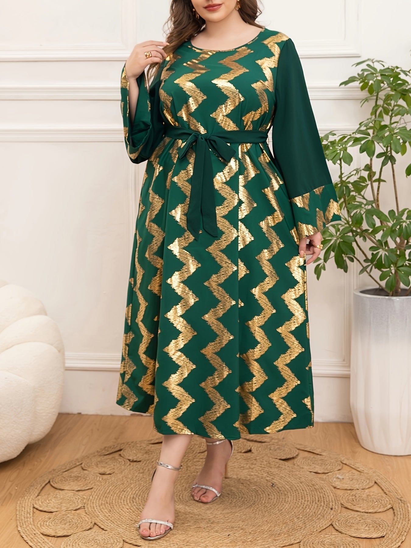Women's Plus Size Elegant Tie Waist Middle Eastern Dress