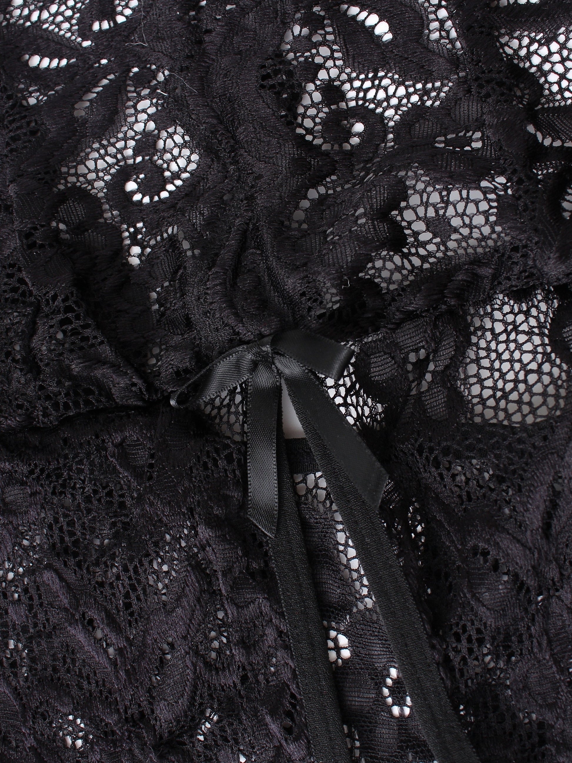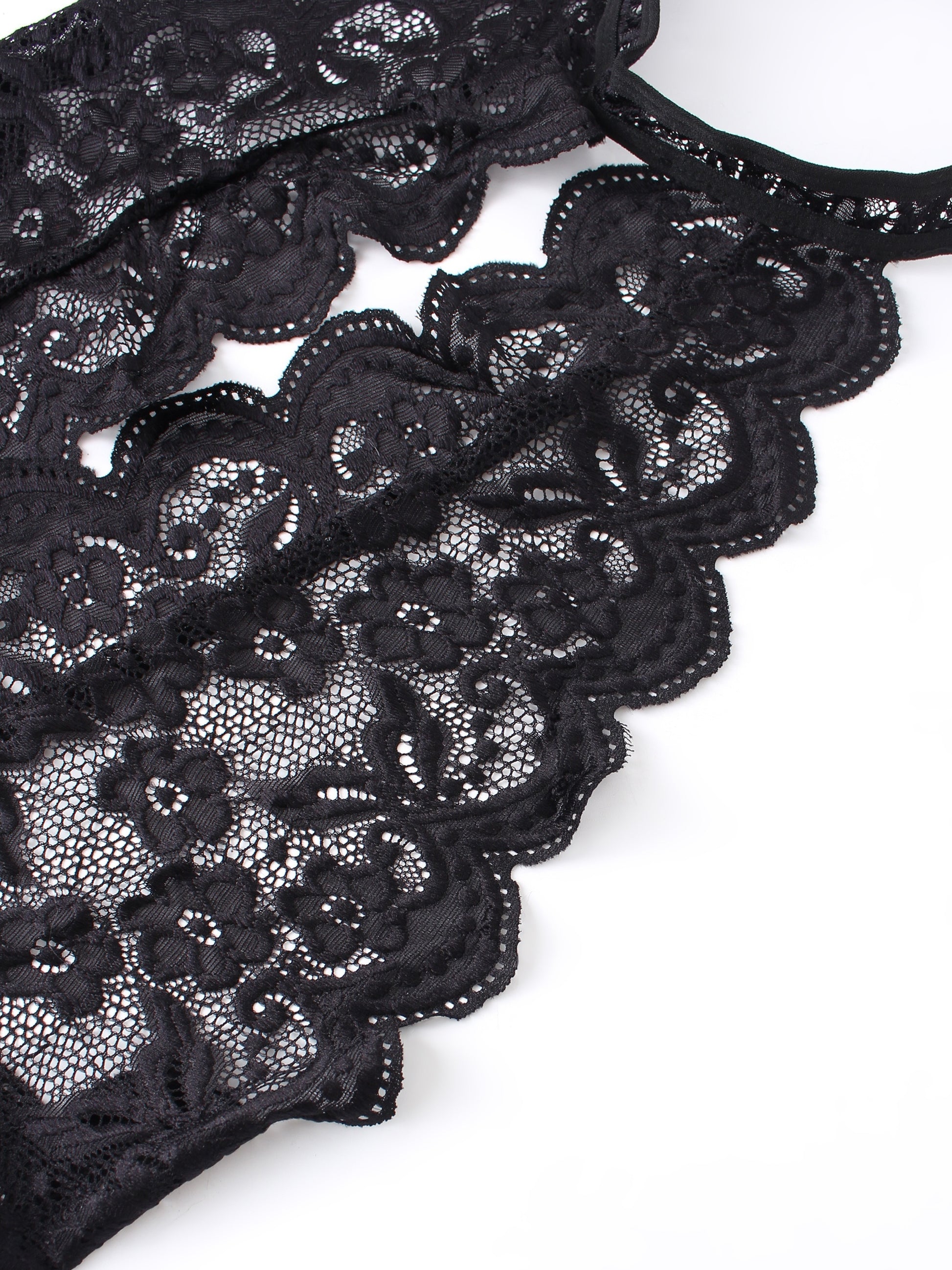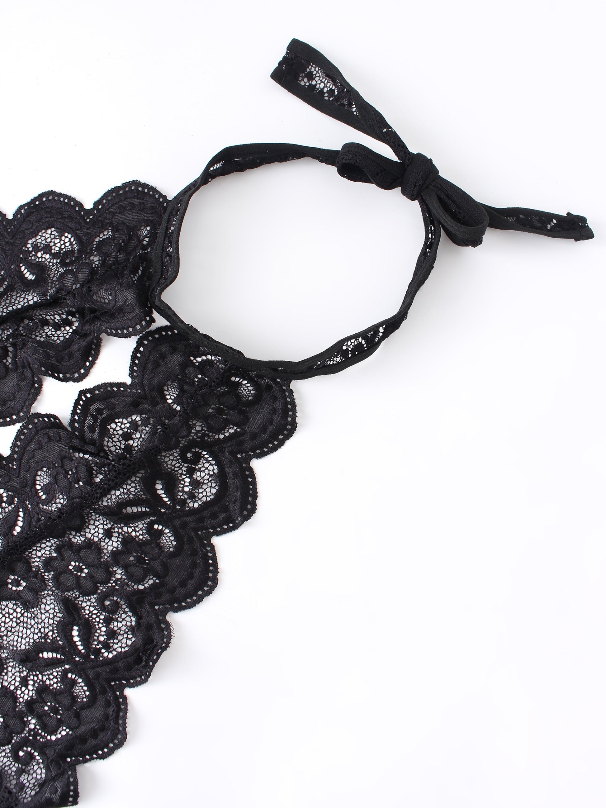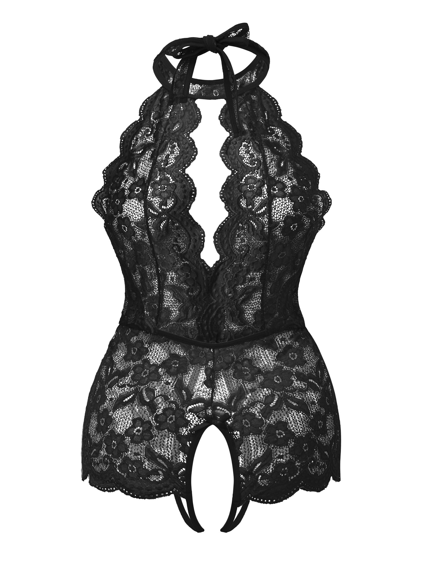 Women's Plus Size Floral Deep V Bodysuit With Open Crotch Tie-Up