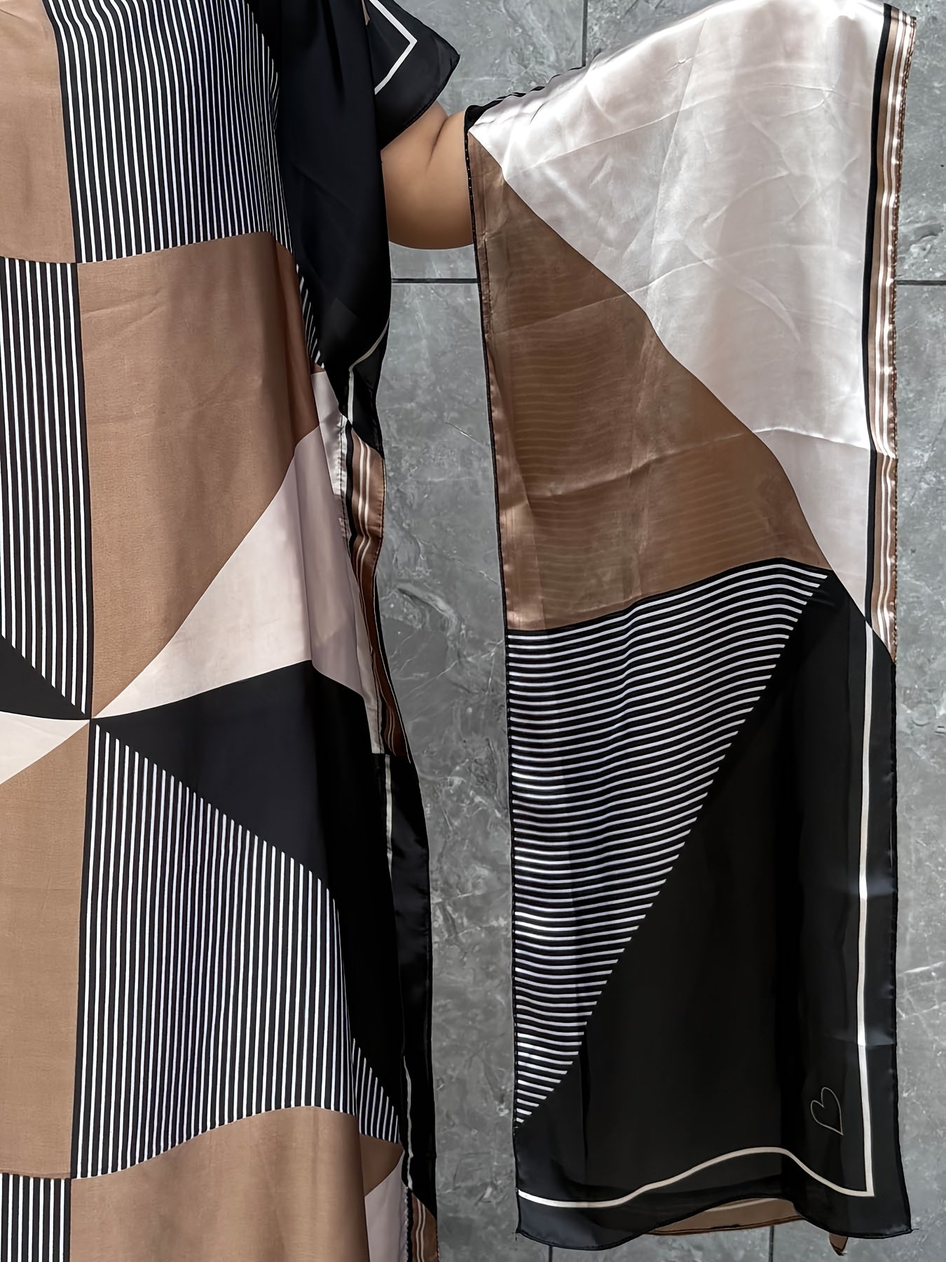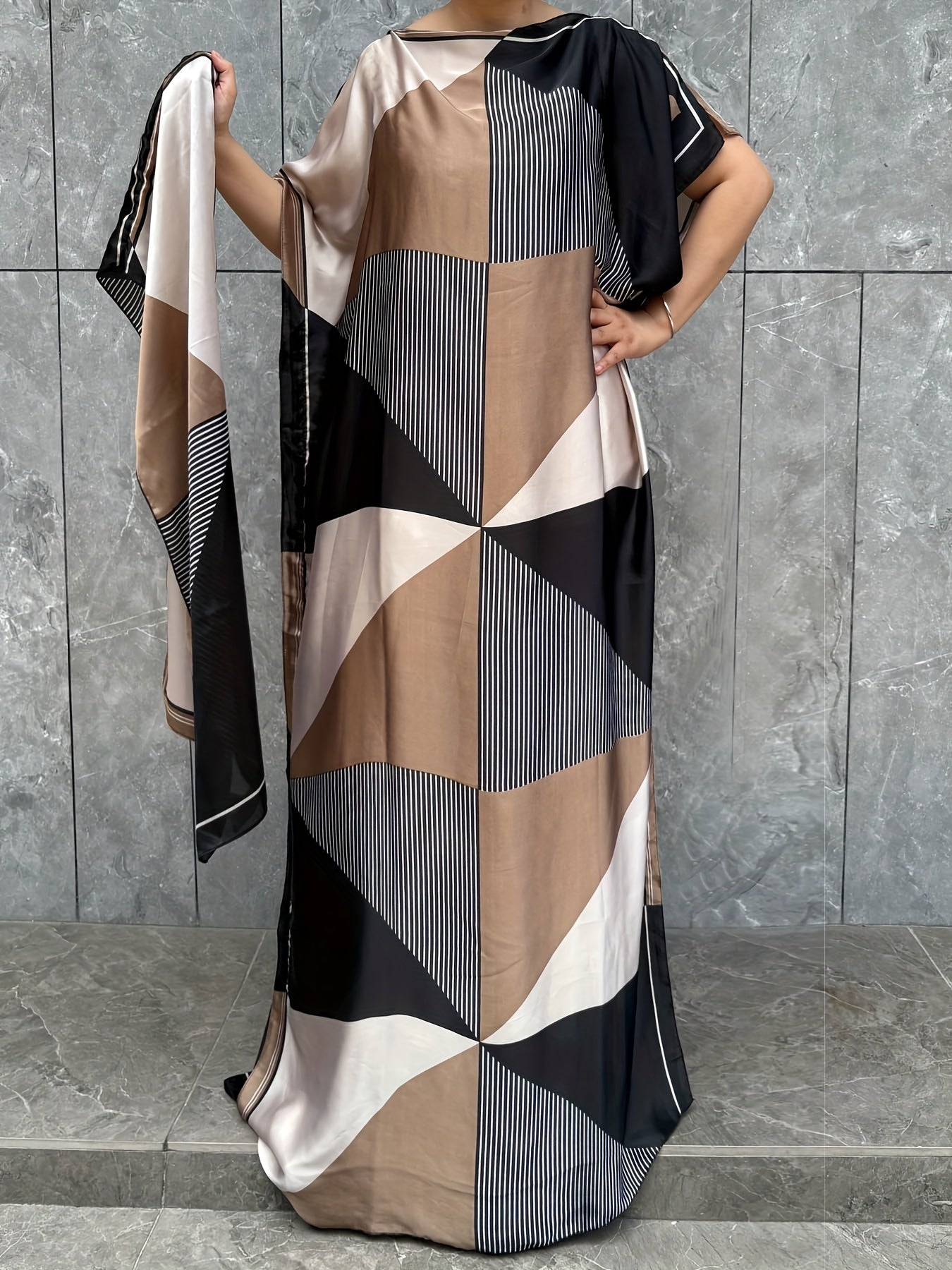 Women's Plus Size Geometric Print Kaftan Dress Short Sleeve Summer Casual Beige Black White