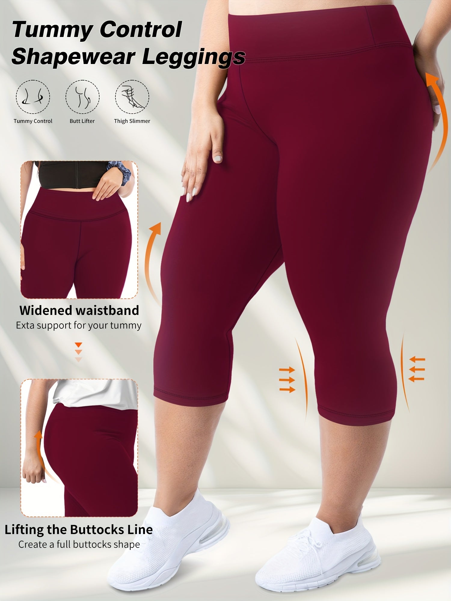 Women's Plus Size High Waist Capri Leggings Stretchy Solid Color Pack of 3