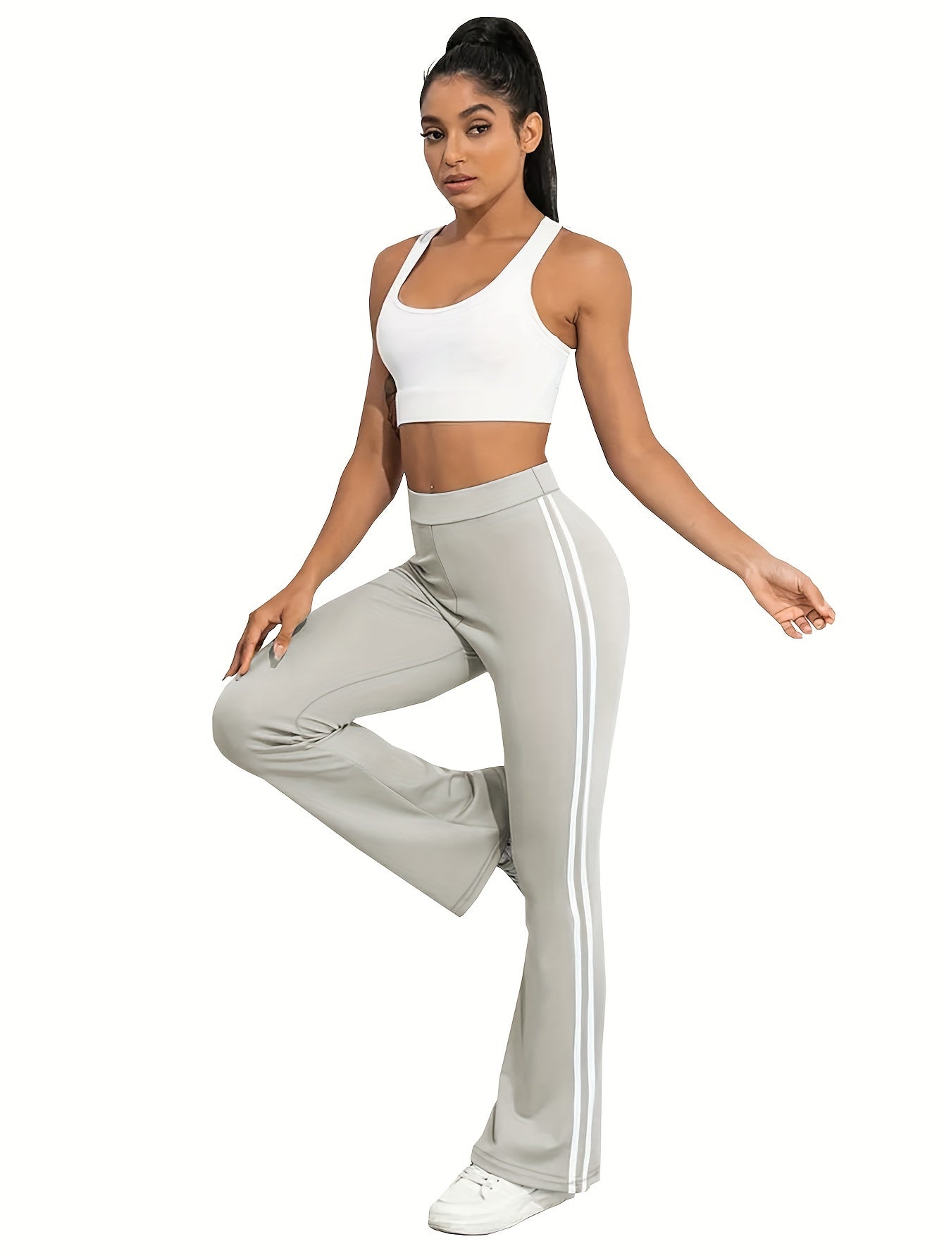 Women's Plus Size Sports Pants Set, High Waist Flare Leg, Spring Autumn