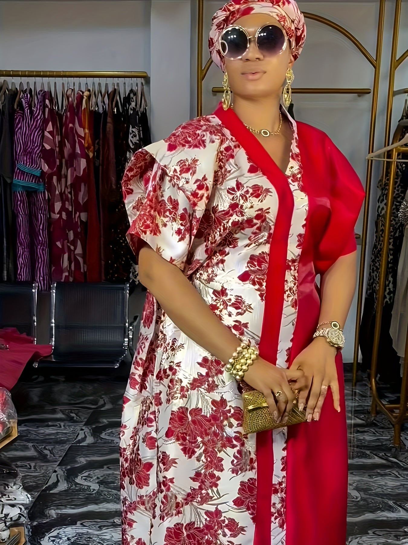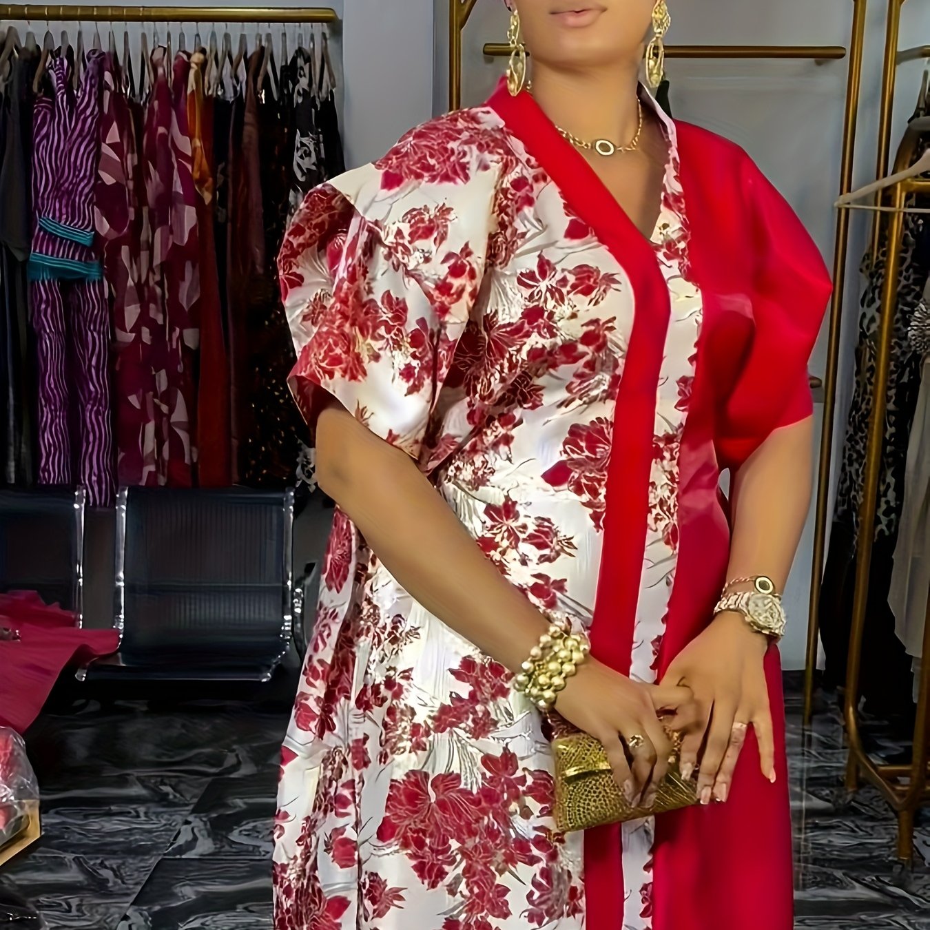 Women's Plus Size V-Neck Sequin Long Dress, Loose Fit, All Seasons