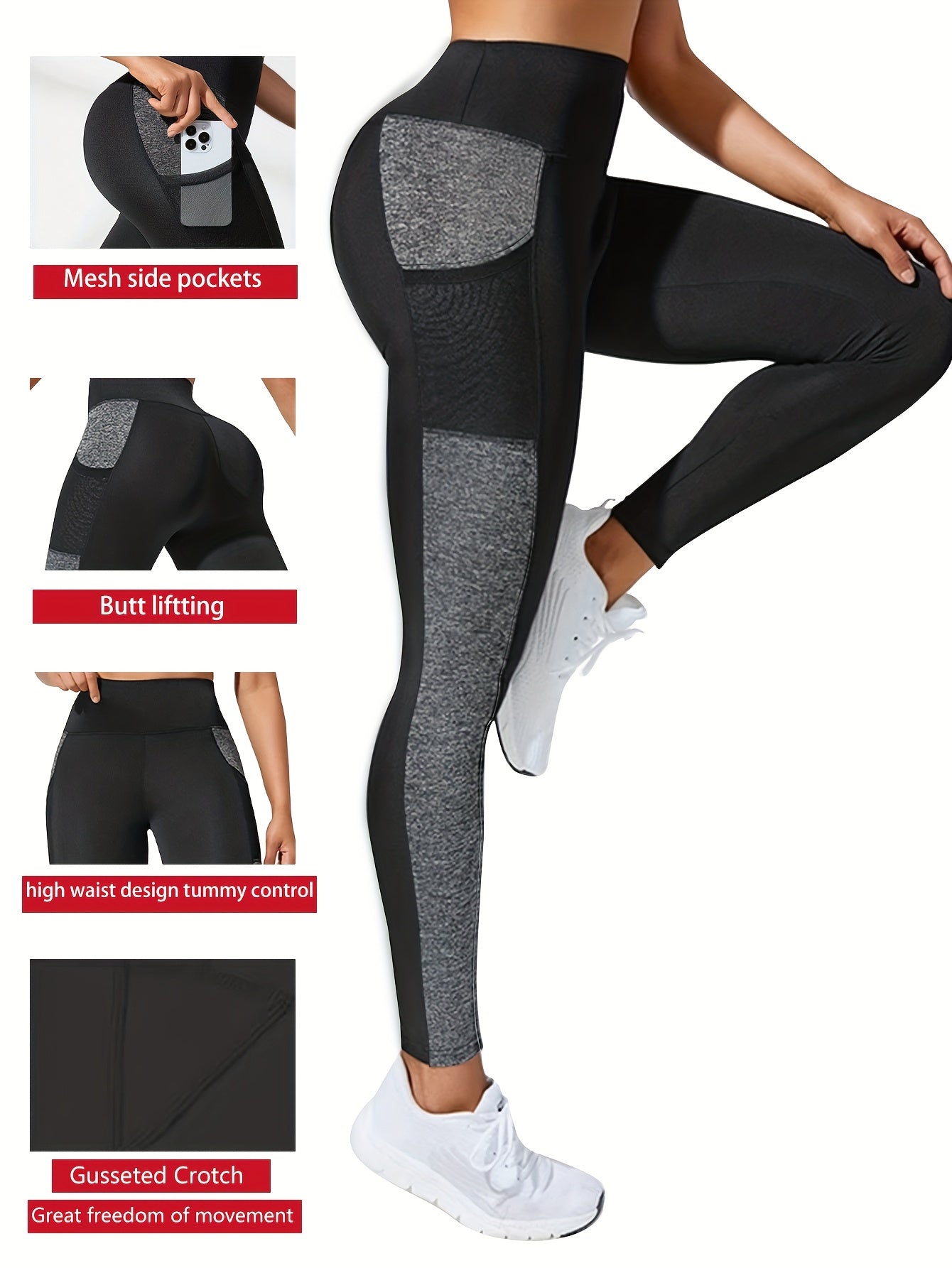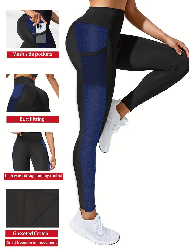 Women's Plus Size Yoga Leggings With Side Mesh Pockets High Waist Stretchy Breathable