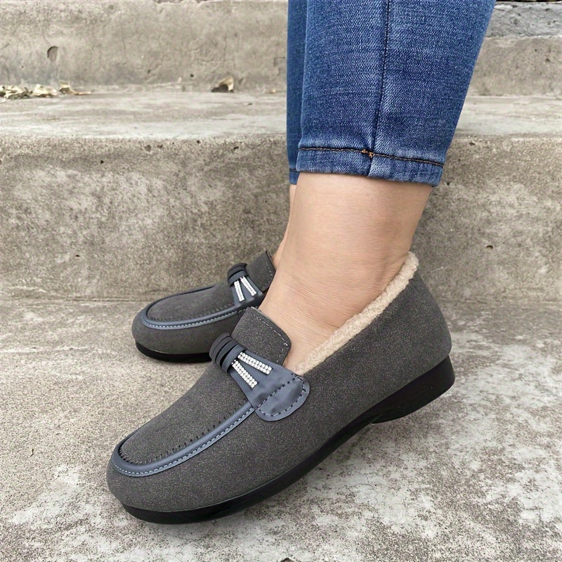 Women's Plush-Lined Loafers Cozy Slip-On Flats Dark Brown