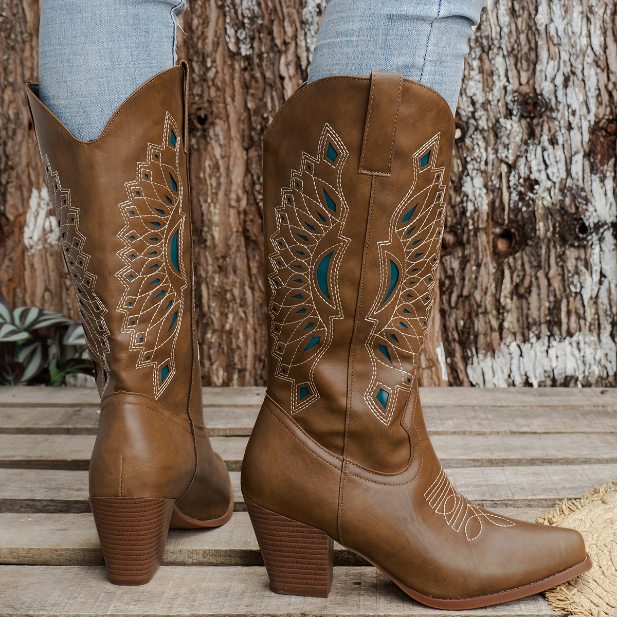 Women's Retro Chunky Heel Boots Slip On Mid Calf Comfortable Black