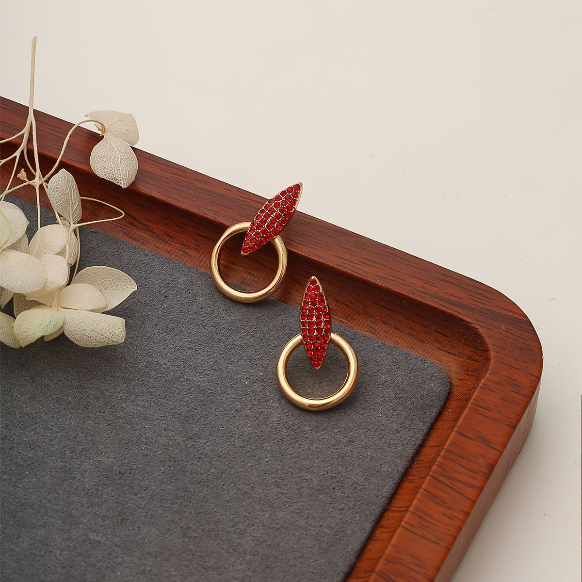 Women's Silver Hollow Circle Leaf Dangle Earrings Rhinestone Jewelry