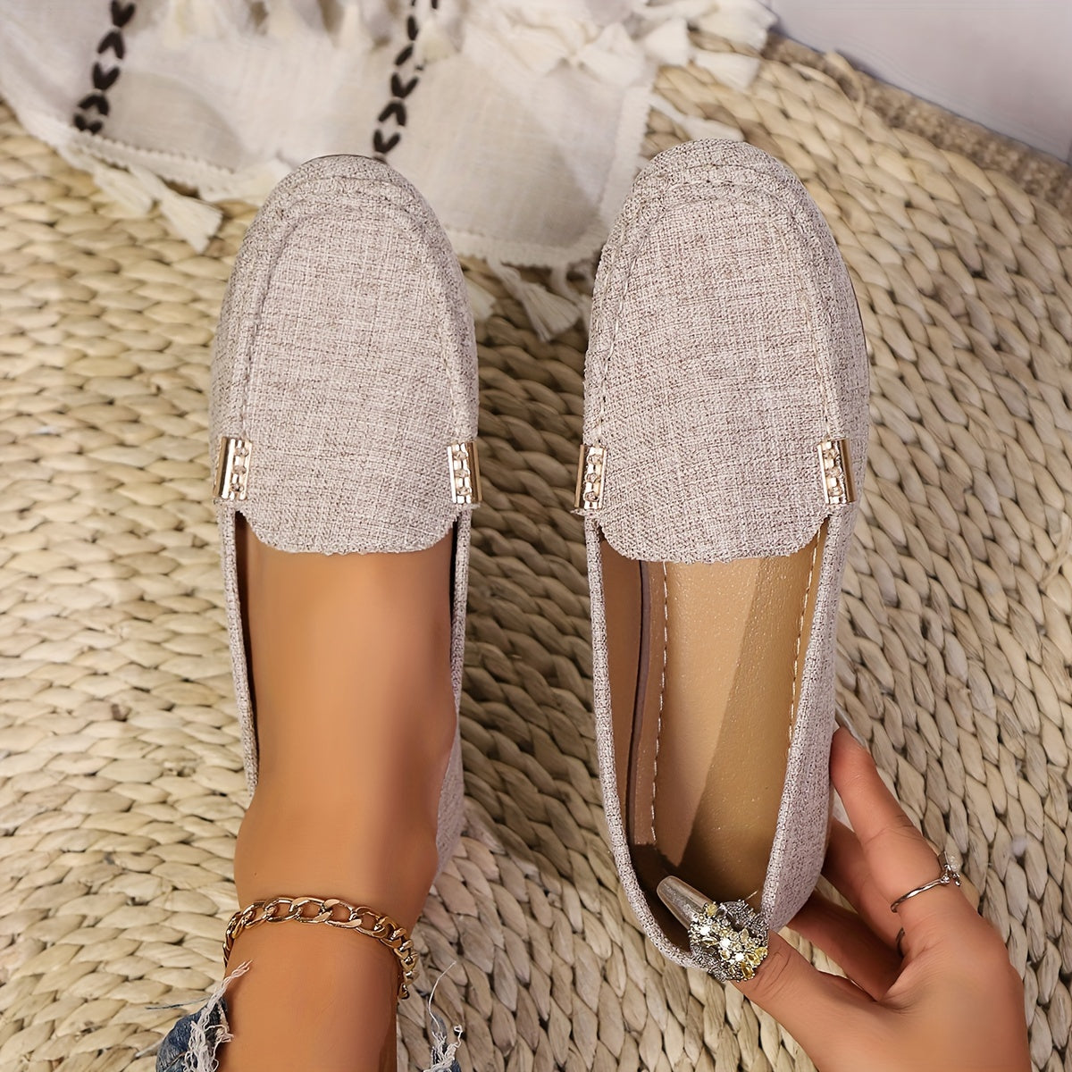 Women's Slip-On Flats Casual Striped Breathable Fabric Summer Shoes