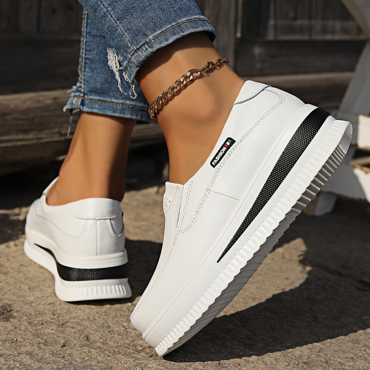 Women's Slip-On Loafers White Faux Cover Casual Shoes Cushioned Sole