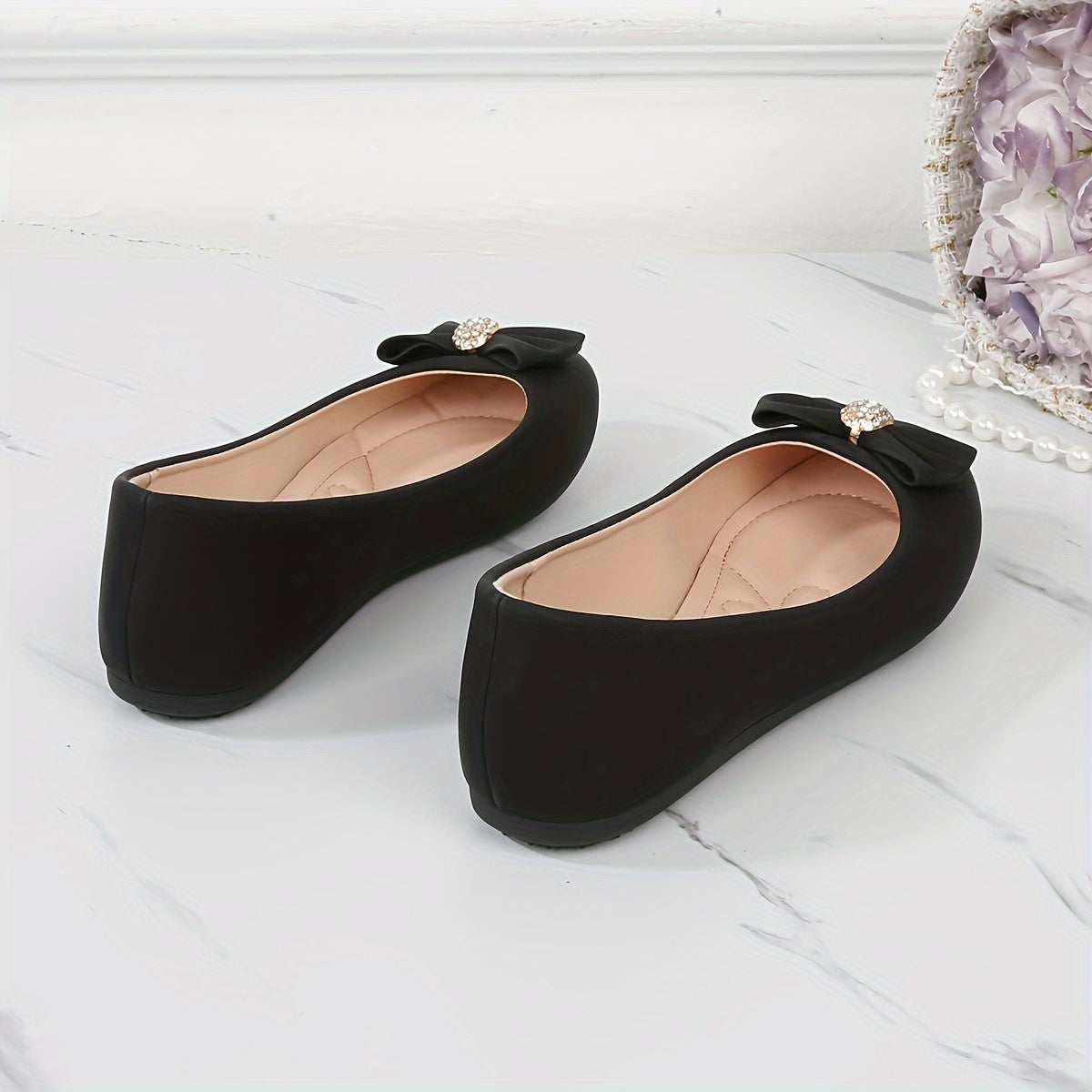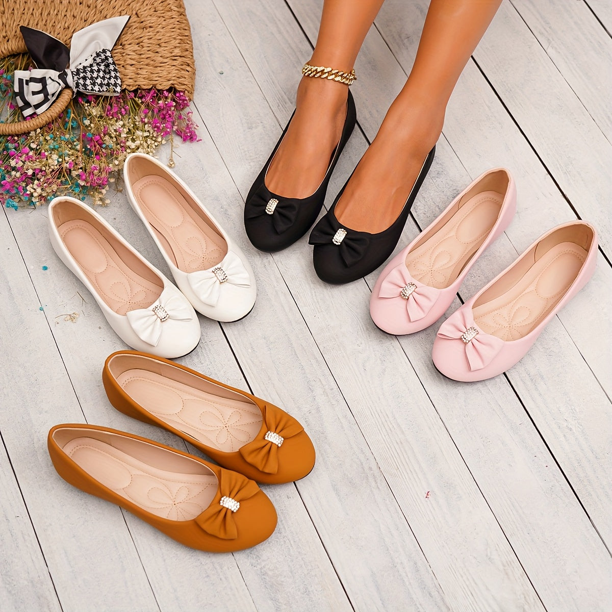 Women's Slip-On Loafers with Glitter Bow Flats in White Pink Brown