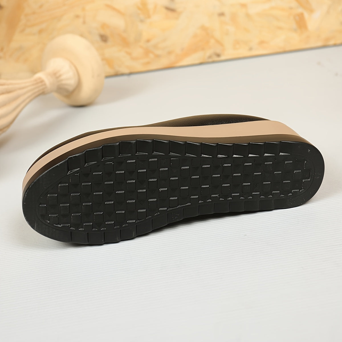 Women's Slip-On Platform Shoes with Cushioned Sole Black Beige Chunky