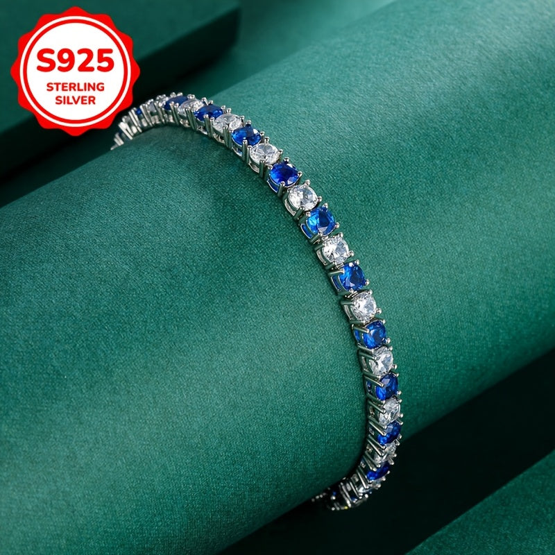 Women's Sterling Silver Tennis Bracelet with Blue and White Cubic Zirconia for Daily and Party Wear