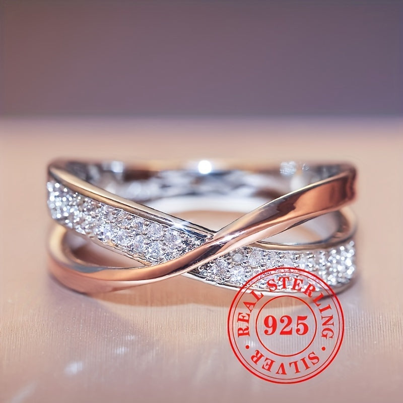 Women's Two Tone Mobius Sterling Silver Ring with Pave Zirconia for Daily Wear