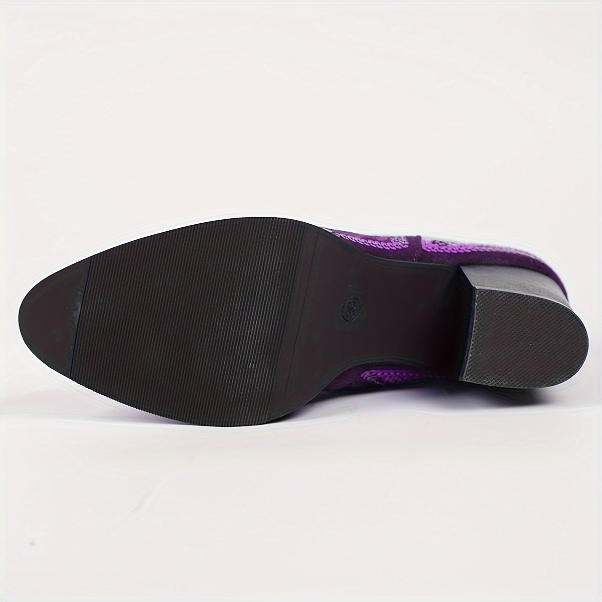 Women's Velvet Block Heel Ankle Boots with Floral Design for Dressy Occasions