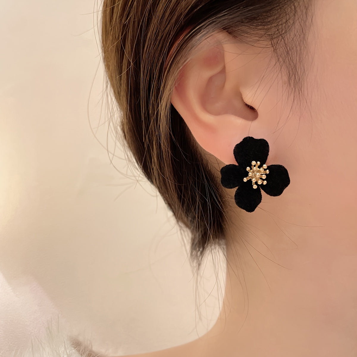 Women's Velvet Flower Earrings 14K Gold Plated Zinc Alloy Studs Versatile Jewelry
