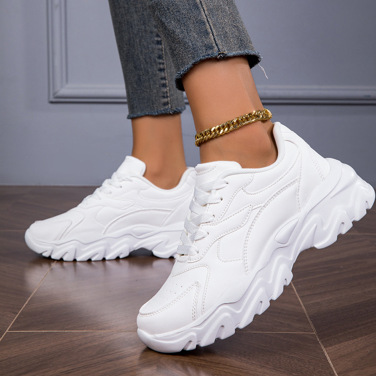 Women's White Chunky Dad Shoes Breathable Thick Sole Comfortable Sneakers for Running Fitness