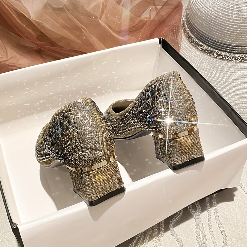 Women Sequin Vintage Style Mary Jane Pumps Mid Heel Rubber Sole