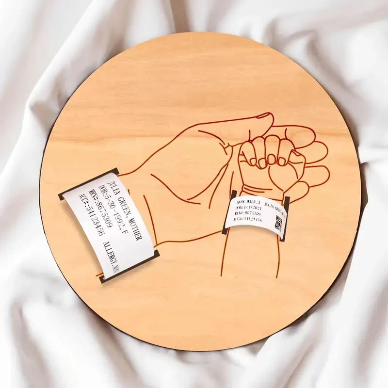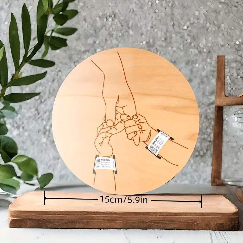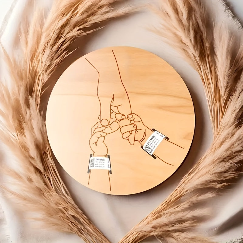 Wooden Birth Bracelet Keepsake with Engraved Heart and Round Memorial Plaque for Mother's Day and Family Gift