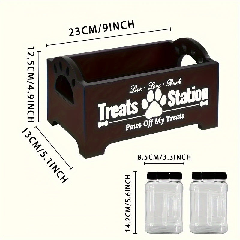 Wooden Pet Treat Storage Station with 2 Plastic Jars for Dog Snacks and Treats