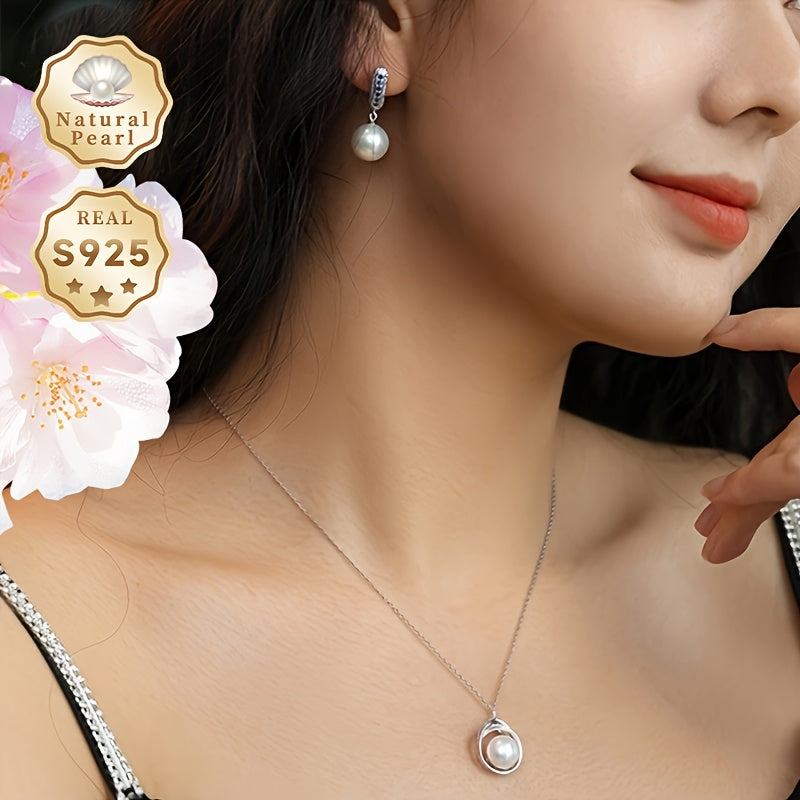 Women's Freshwater Pearl Dangle Earrings 11-12mm S925 Silver Gift Box