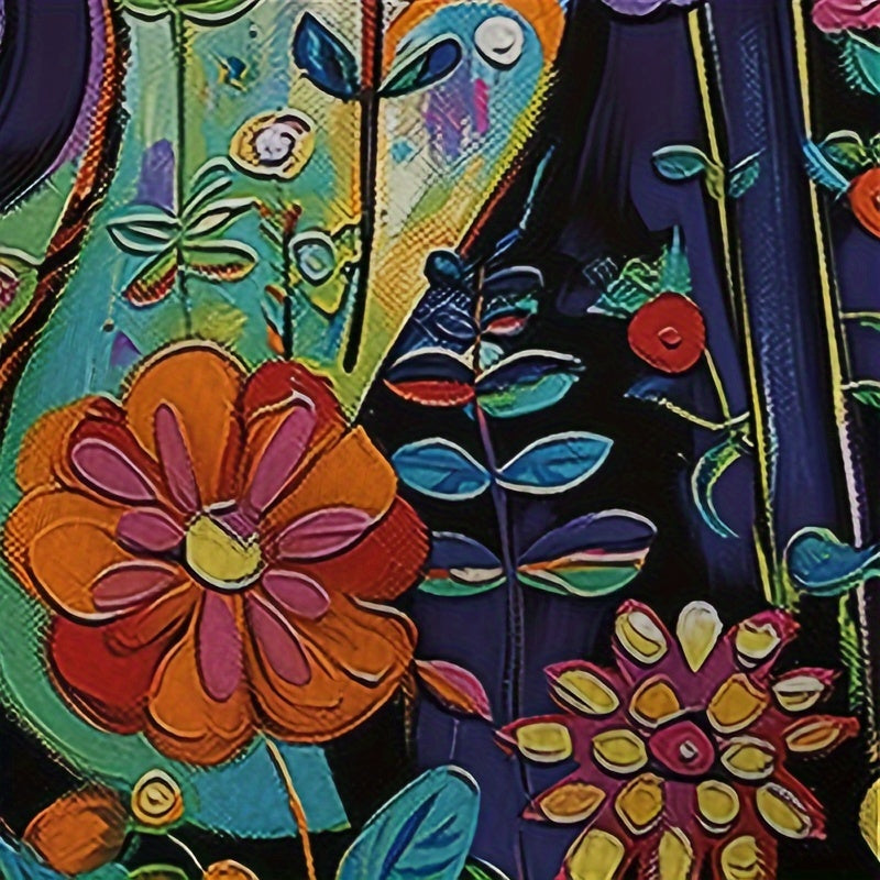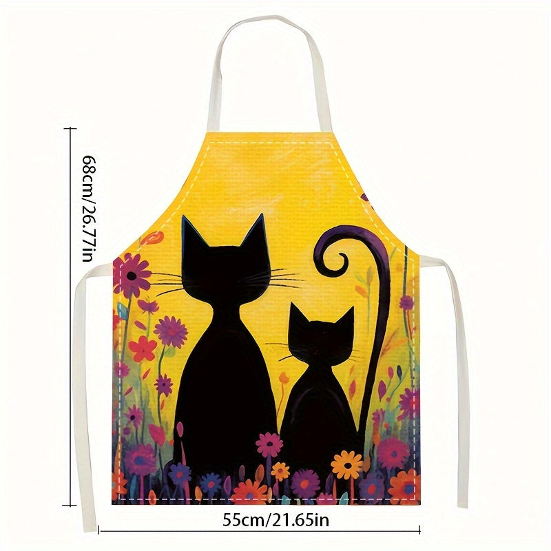 Linen Apron with Retro Cat Painting Pattern for Kitchen Cooking and Cleaning