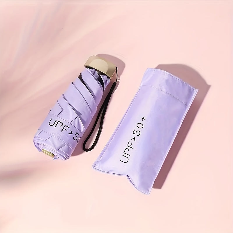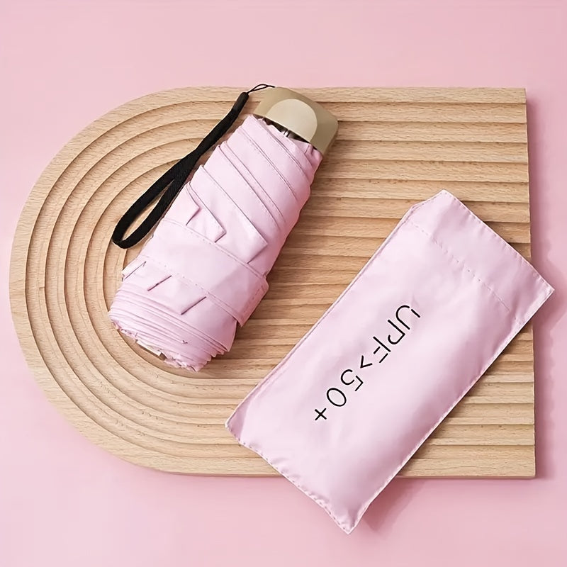 Mini Folding Umbrella UV Protection Windproof with Gold Handle Casual Basic Style