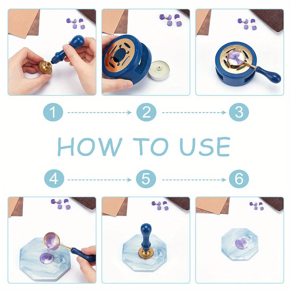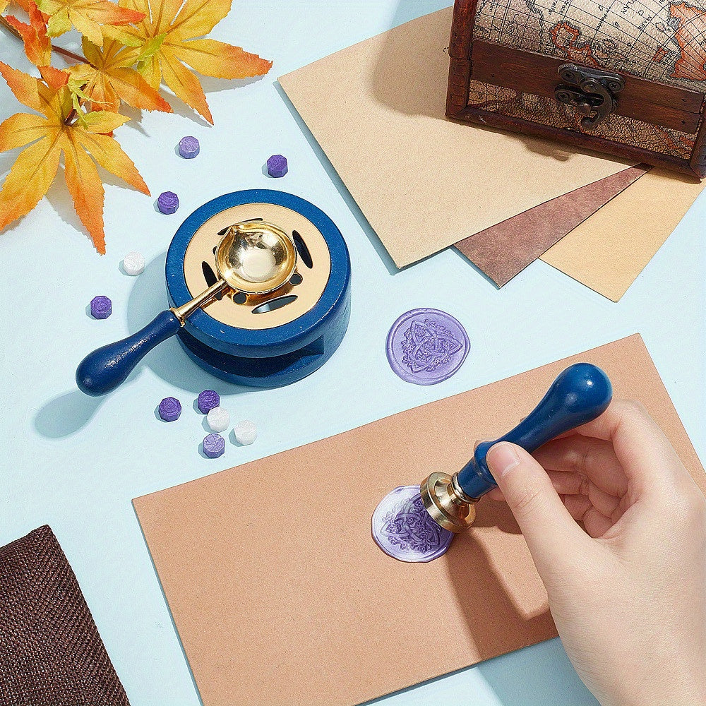 Set of 3 Round Iron Wax Stoves with Zinc Alloy Seal Spoon and Wooden Handle Steel Blue