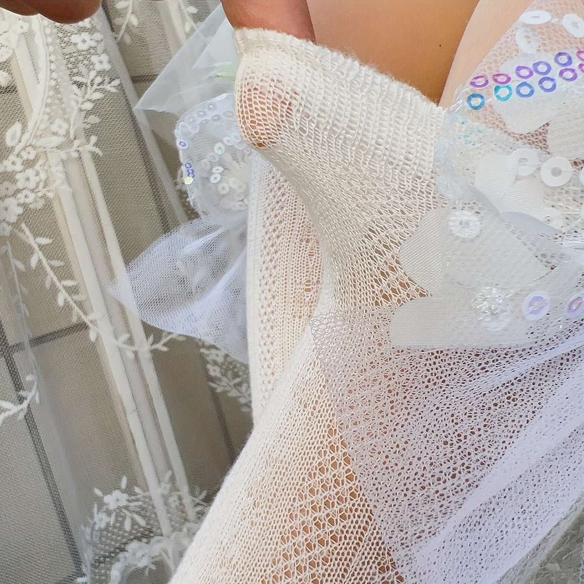 Girls' Mesh Socks with Flower Sequin Pearl Bow Solid Color All-Season