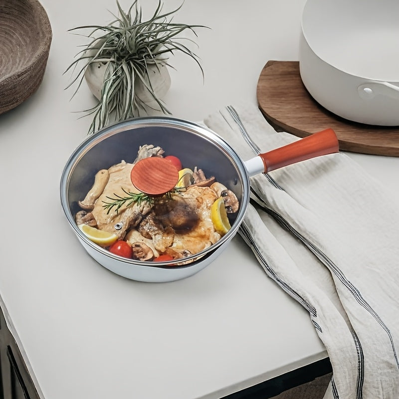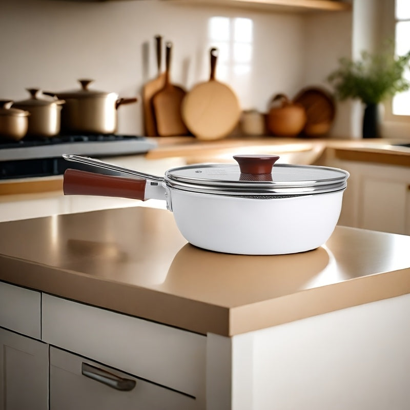 9.84-Inch Non-Stick Cast Aluminum Cooking Pot with Wooden Handle and Glass Lid