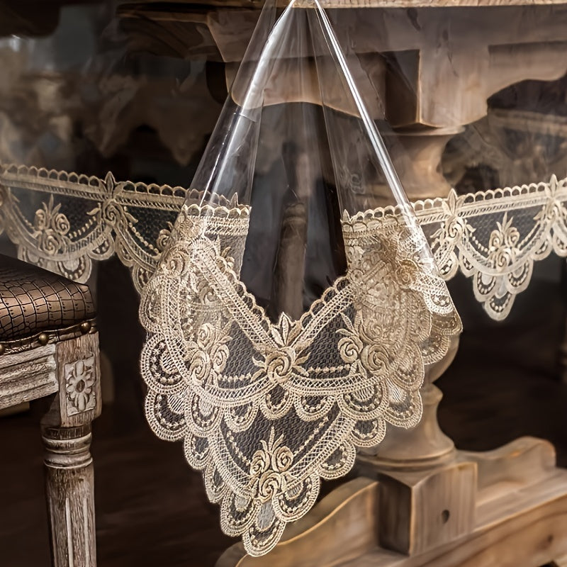 PVC Square Table Cover Non-Slip Lace Border for Kitchen Restaurant Party Home
