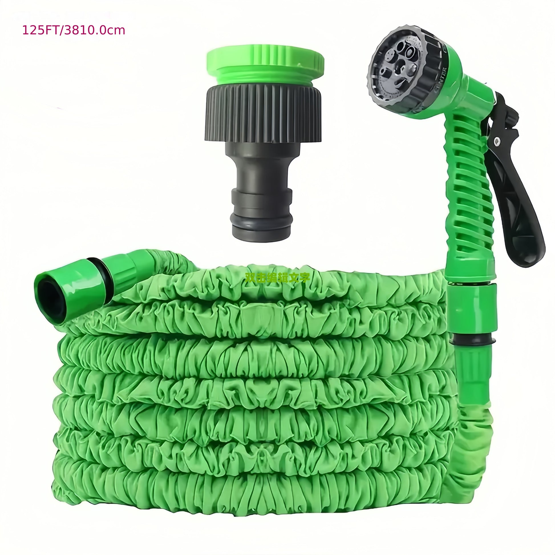Expandable High-Pressure Garden Hose 3X Soft Rubber with 7-Function Nozzle 15-38 M