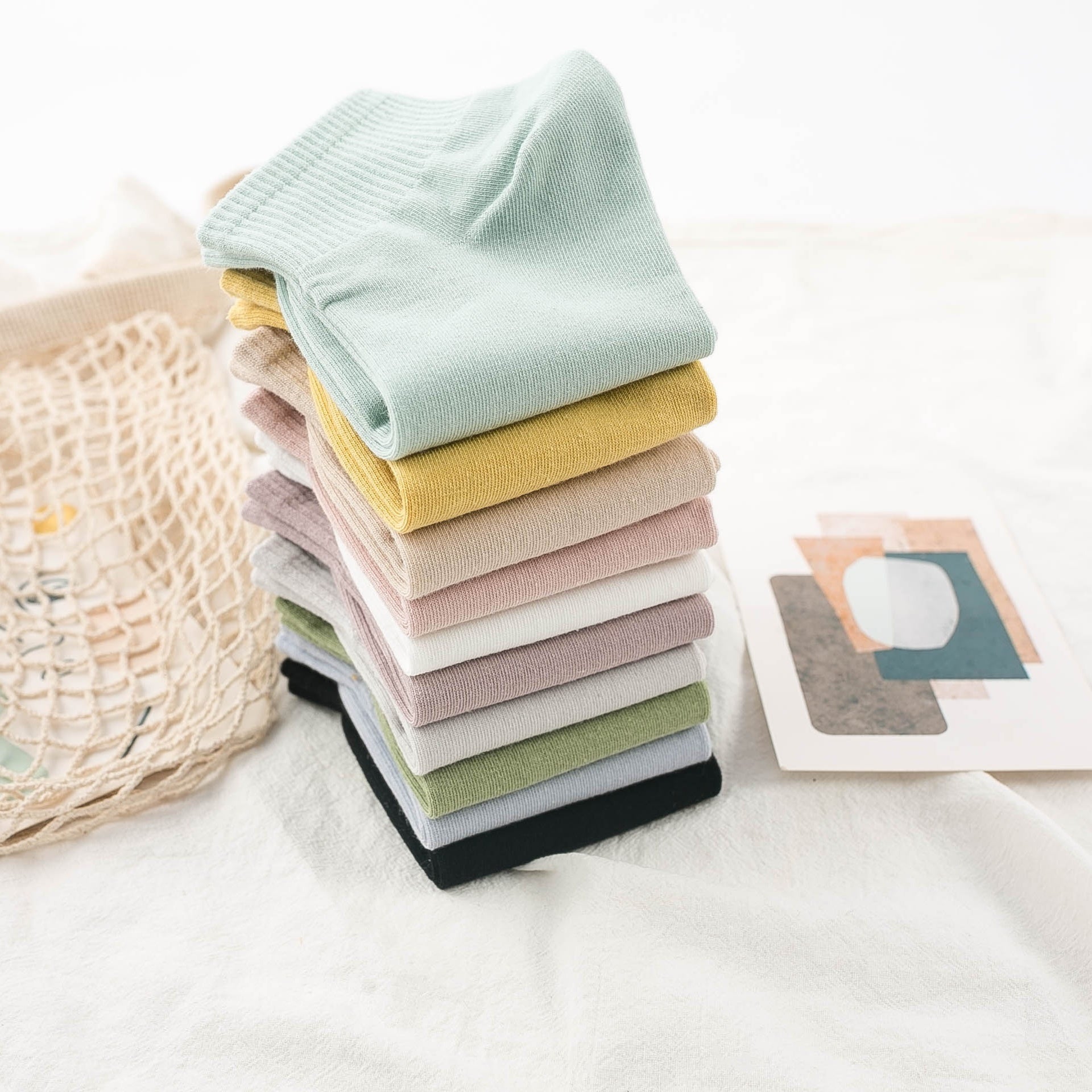 Women’s Crew Socks 10 Pairs Solid Color Comfortable Knit Polyester Spandex
