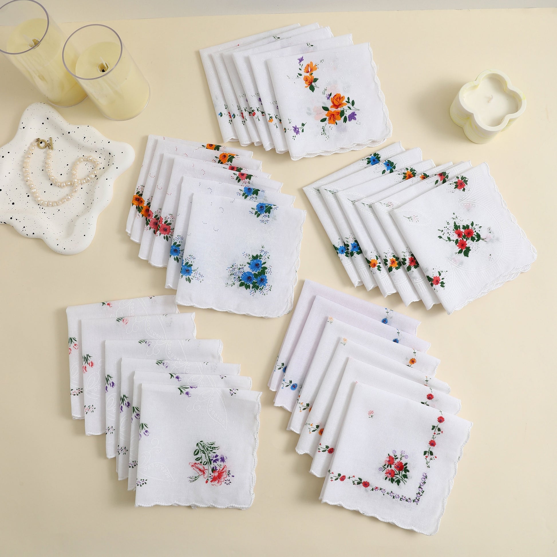 Women's Cotton Handkerchiefs 12 Pack Floral Print Lightweight for Wedding Outdoor Use