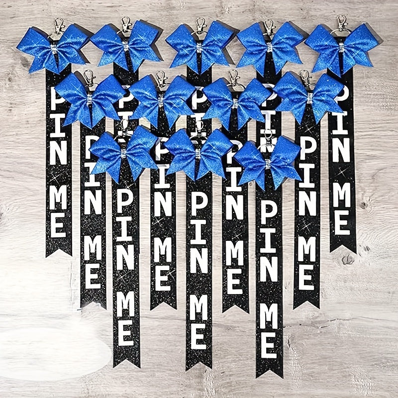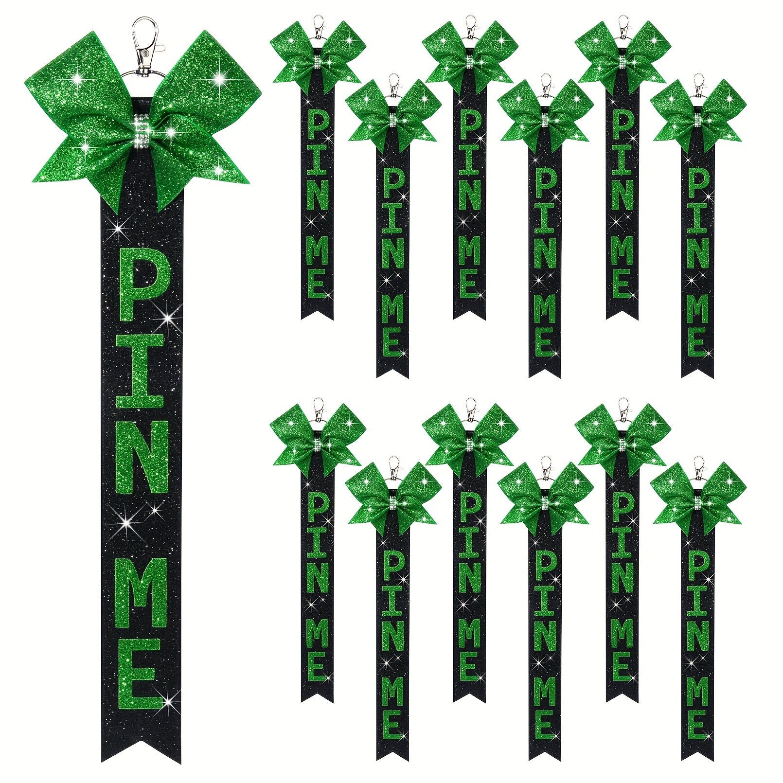 12 Sparkly Cheerleader Bow Keychains Rhinestones Glitter Ribbon for Backpacks Bags Keys