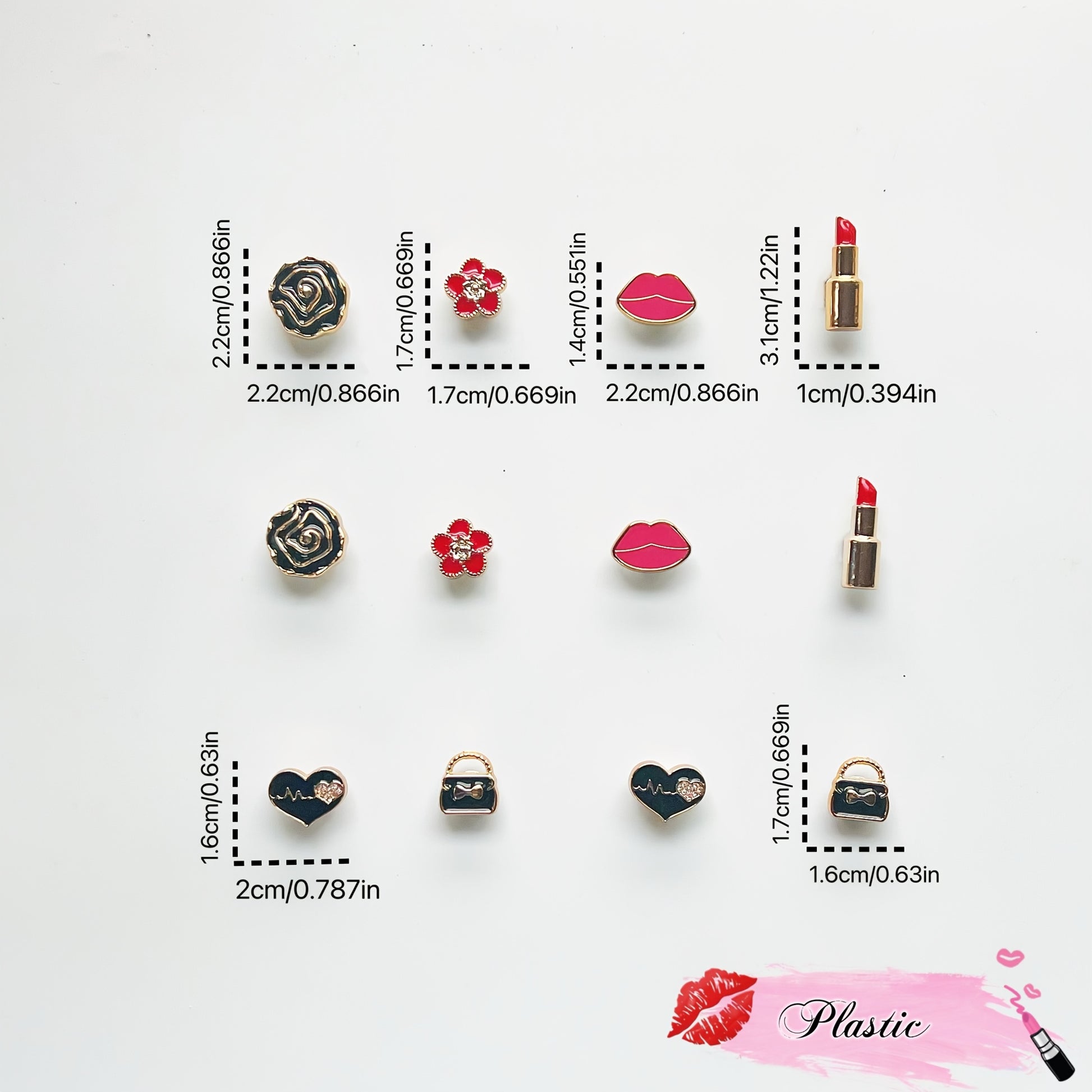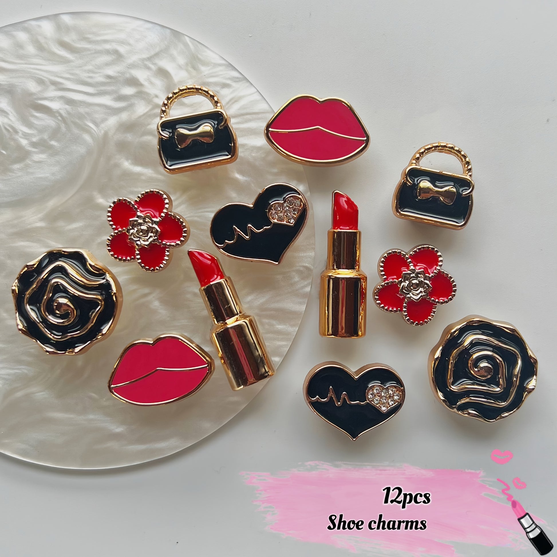 12Pcs Red Lipstick Shoe Charms Removable Plastic Accessories for Sandals and Bags
