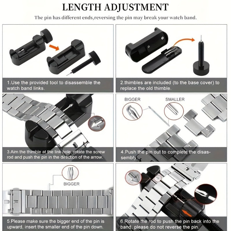 Stainless Steel Watch Band 16mm-24mm for Smartwatches and Traditional Watches Not Water Resistant