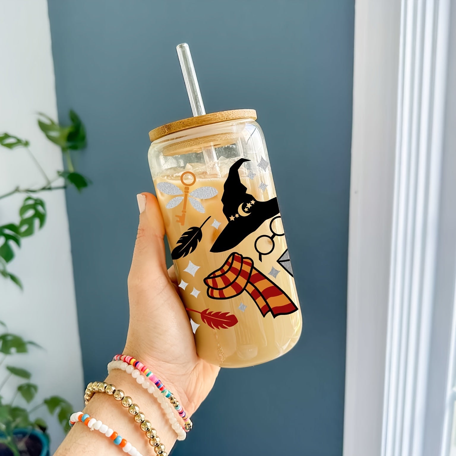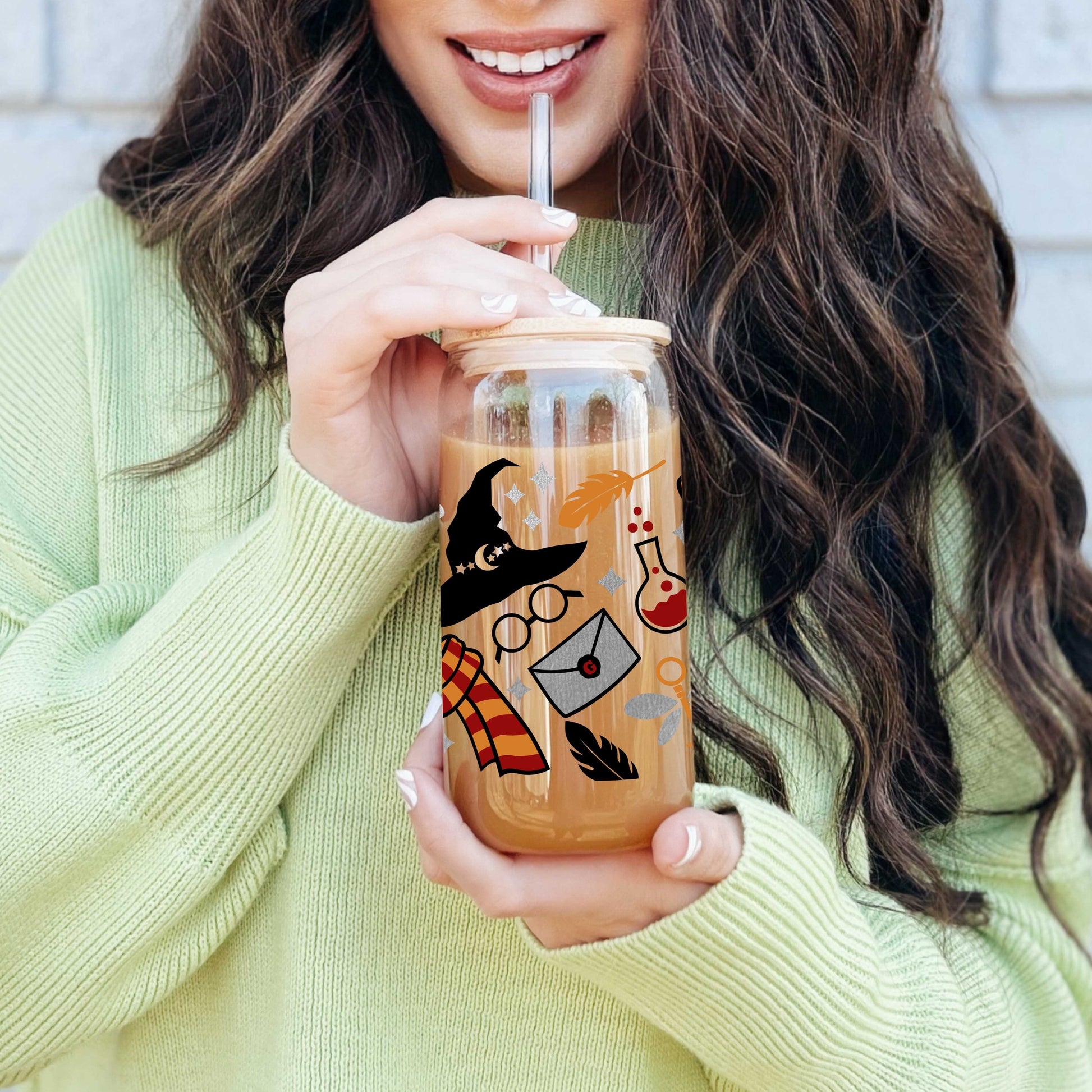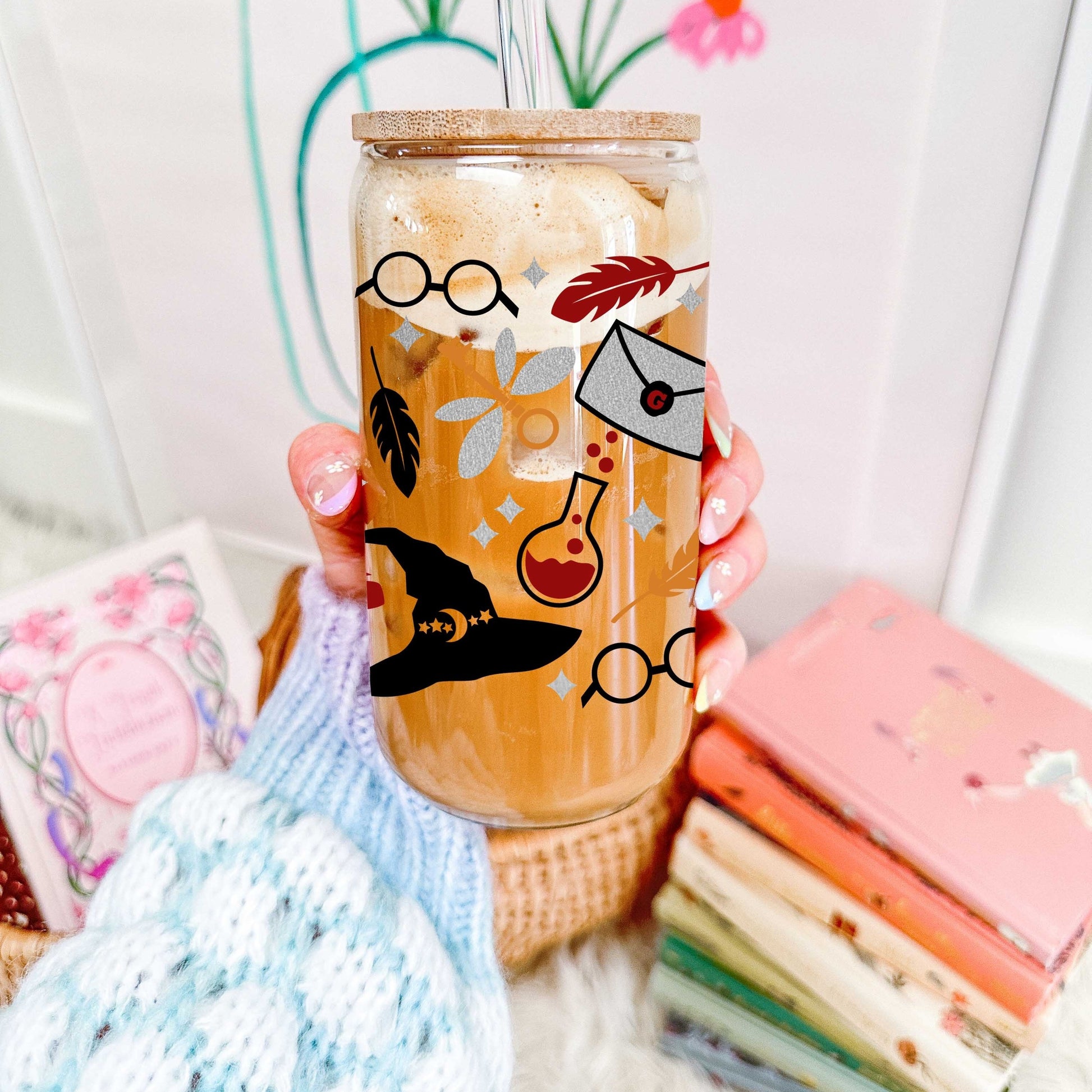 16oz Reusable Glass Cup with Straw and Lid for Beverages