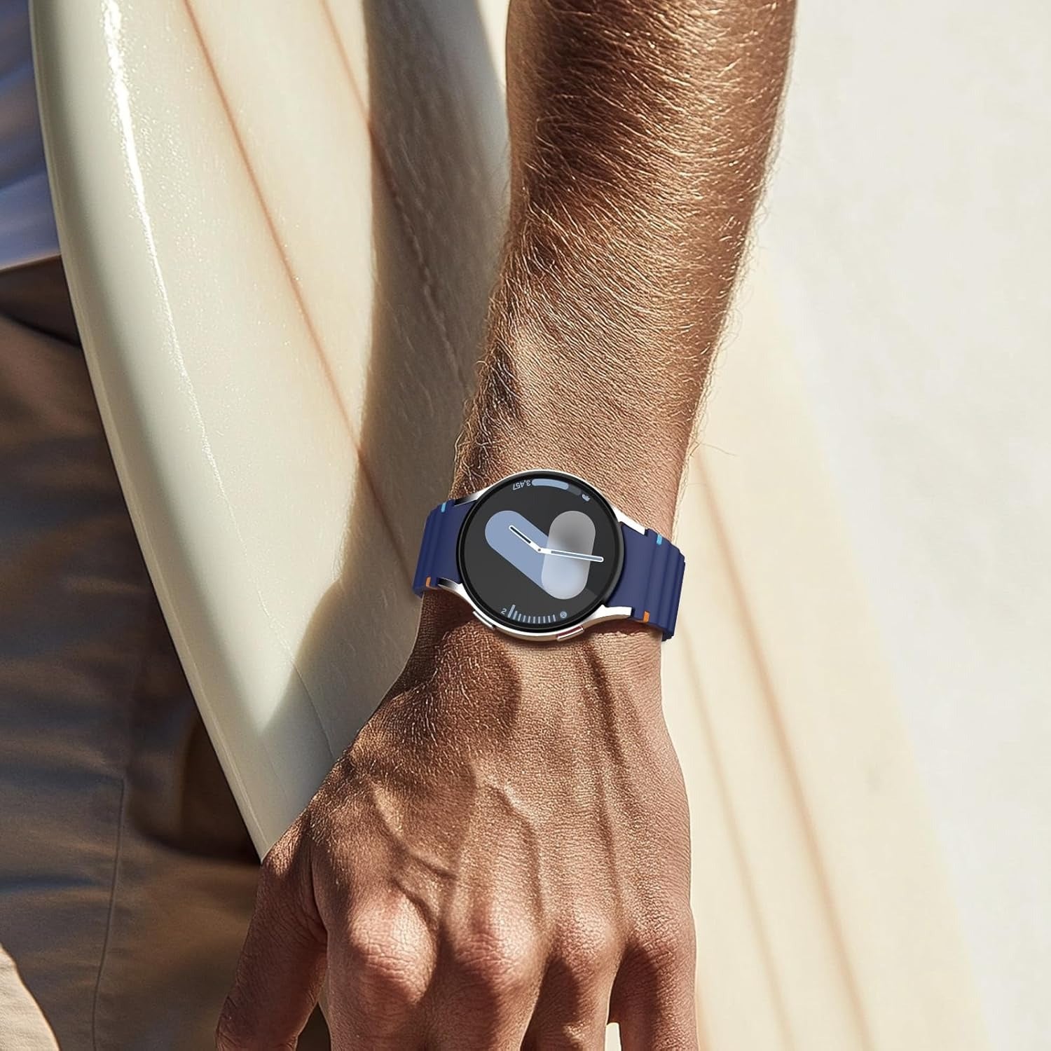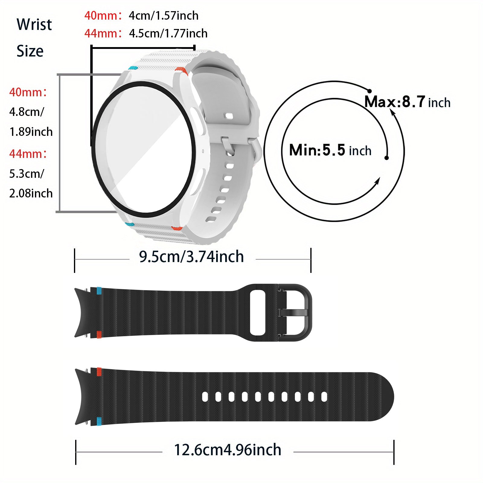 Silicone Sport Watch Band with Wavy Stitch Design and Tempered Glass Case for Samsung Galaxy Watch 4 5 6 7 40mm 44mm