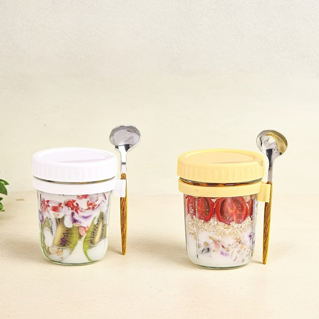 350ml Glass Jars with Spoons for Overnight Oats Salads Yogurt Pack of 2