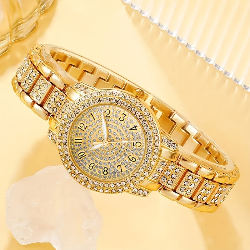 2-Piece Ladies Watch Set Quartz Watch and Hip Hop Bracelet Fashion Casual Jewelry
