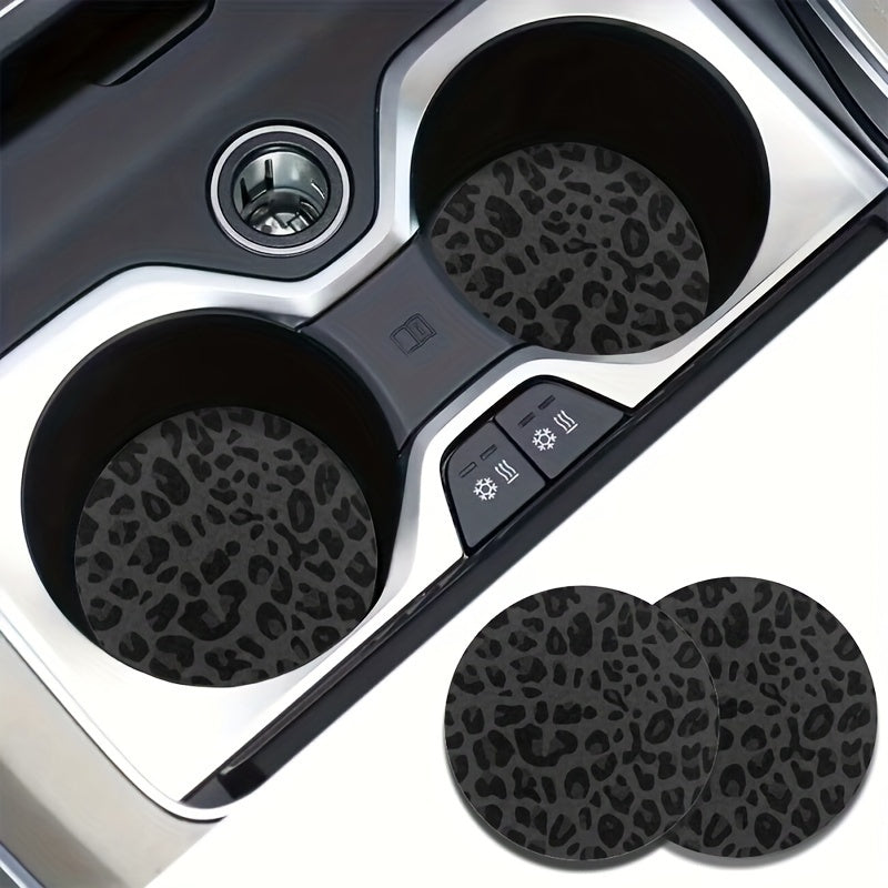 2 Pieces Leopard Car Coasters Non-slip Heat Insulation Cup Holder Accessories