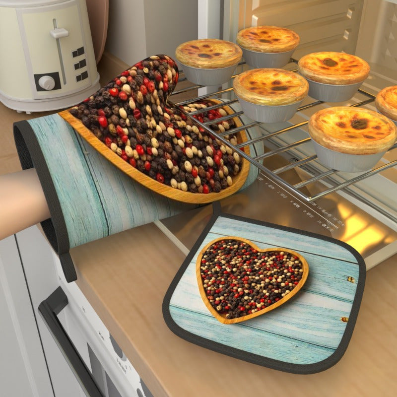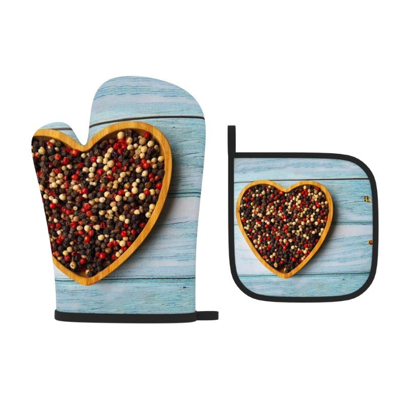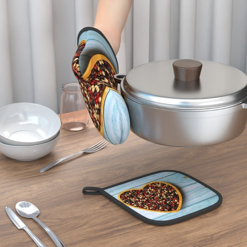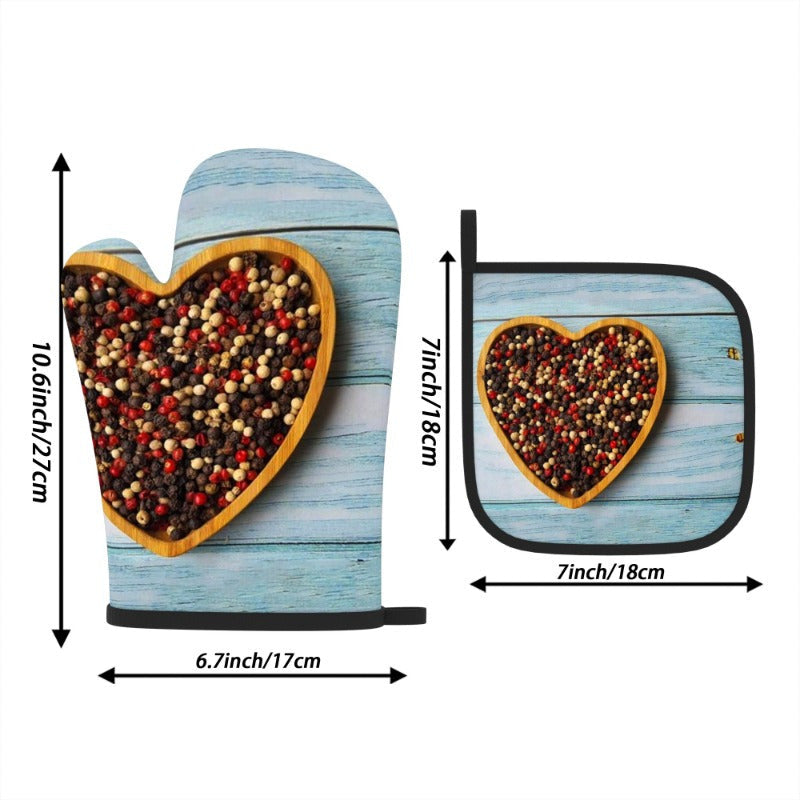Heat Resistant Oven Mitts and Potholders Set with Heart-Shaped Molds, Kitchen Decor, Baking, Grilling