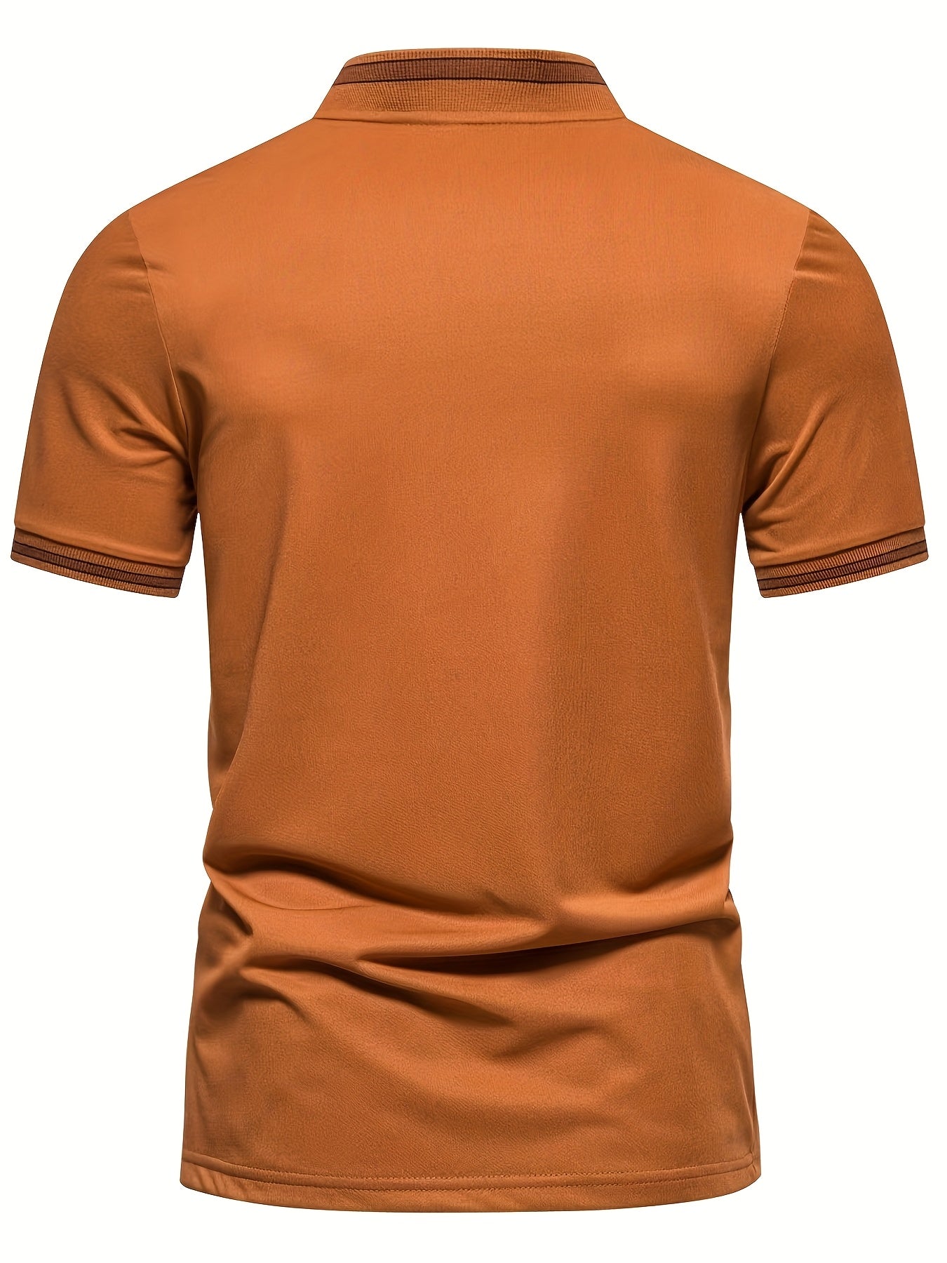 Men's Casual Polo Shirt with Stand-Up Collar and Flag Design Polyester Summer