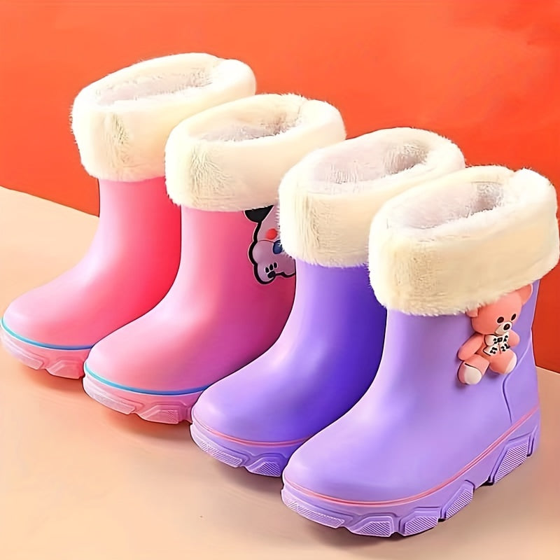 Kids' Rain Boots Unicorn Rainbow Plush Fleece Short PVC Slip-On Outdoor All-Season