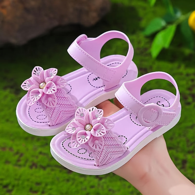 Girls' Floral Princess Shoes Summer 2025 PVC Flexible Sole Hook-and-Loop Pink Purple