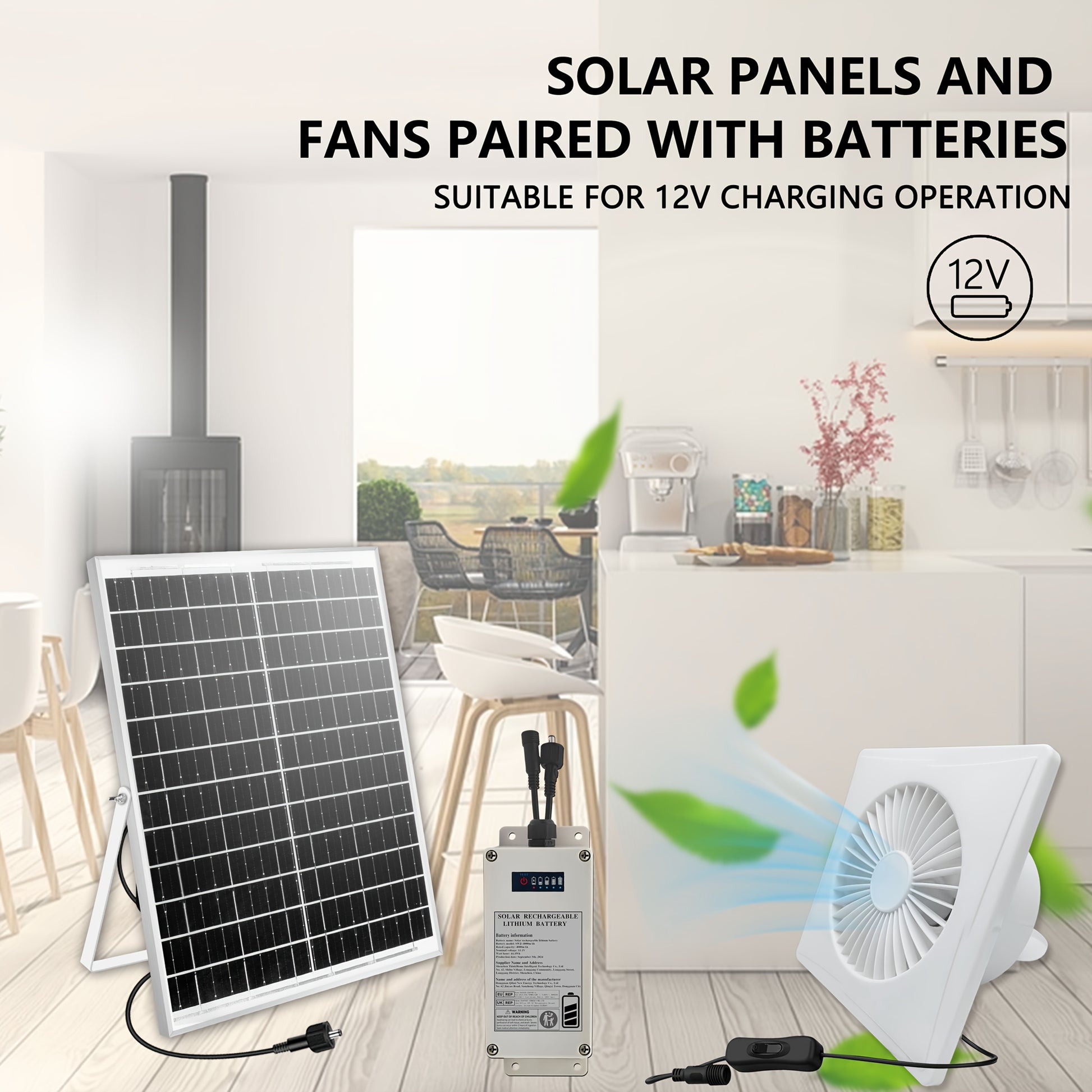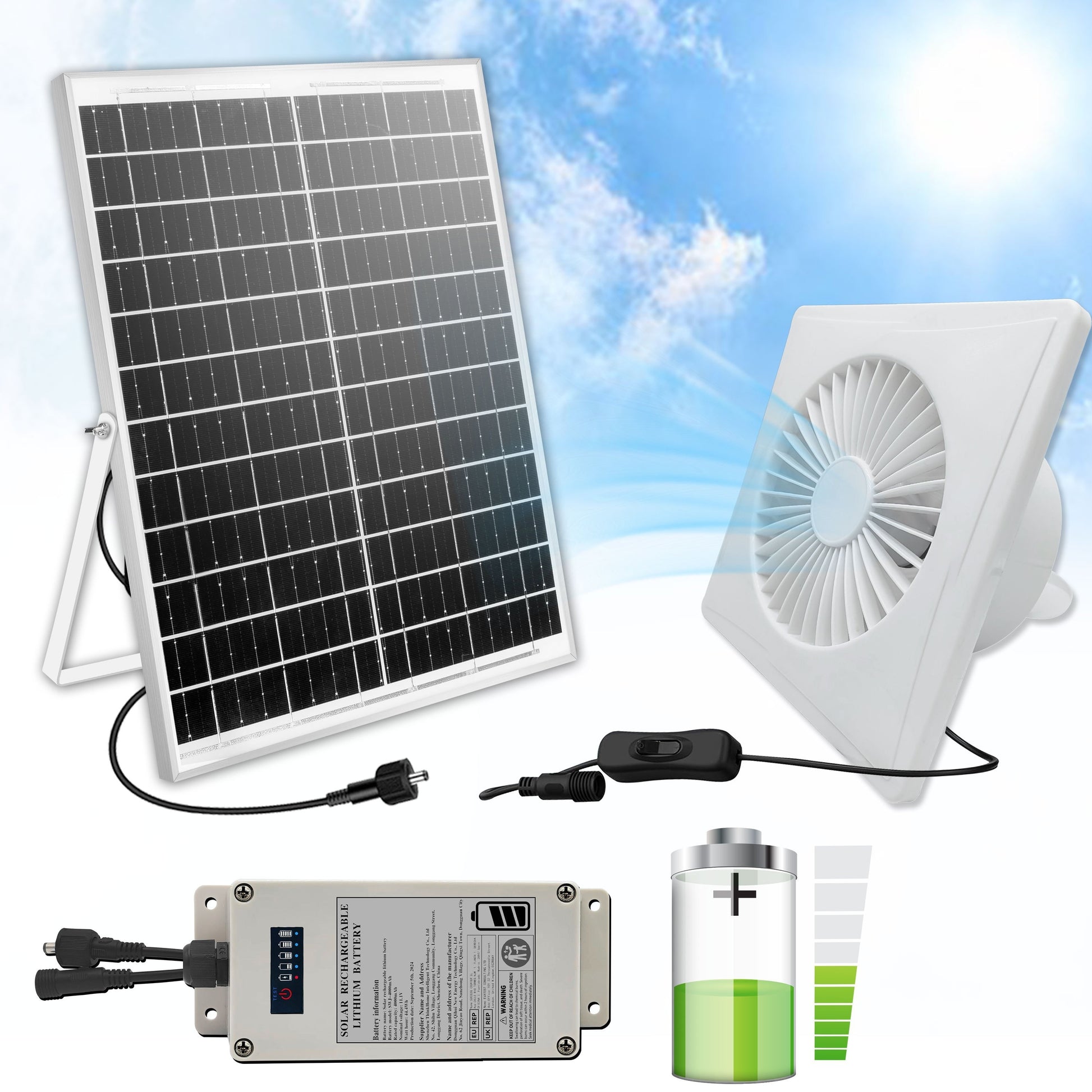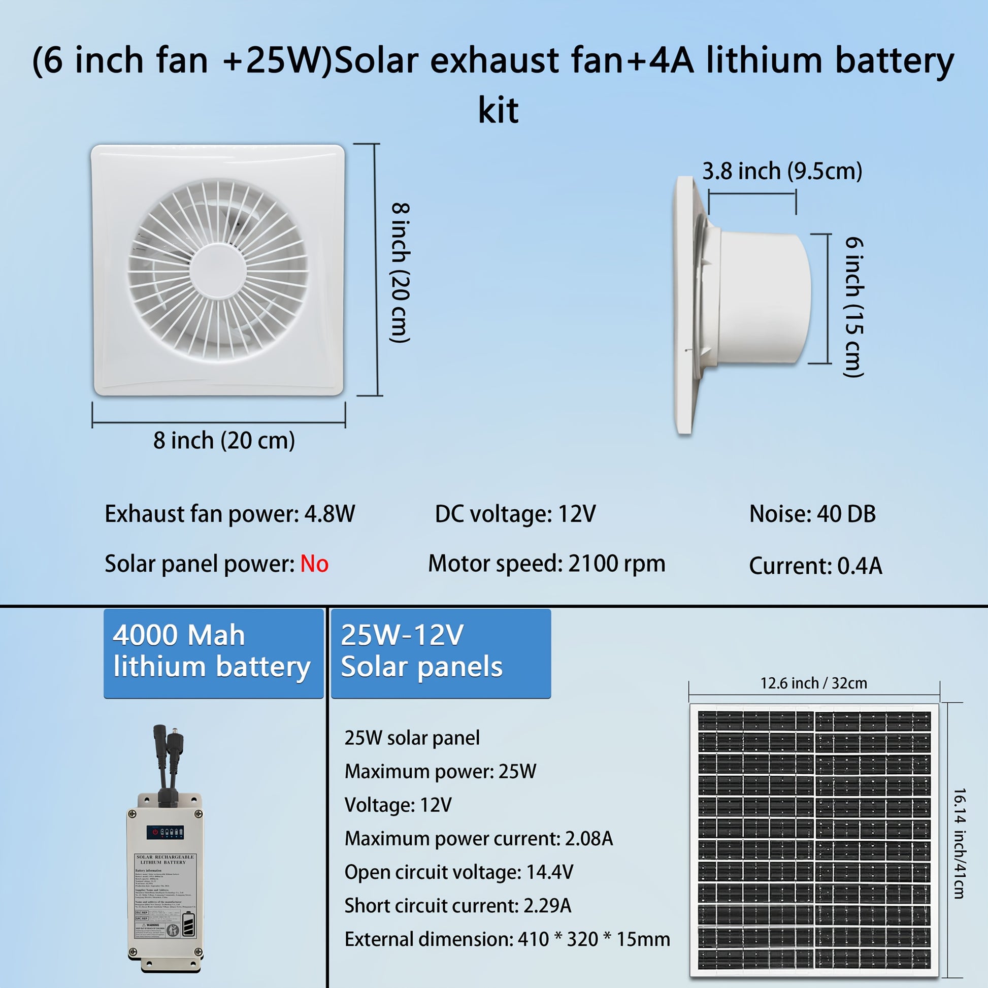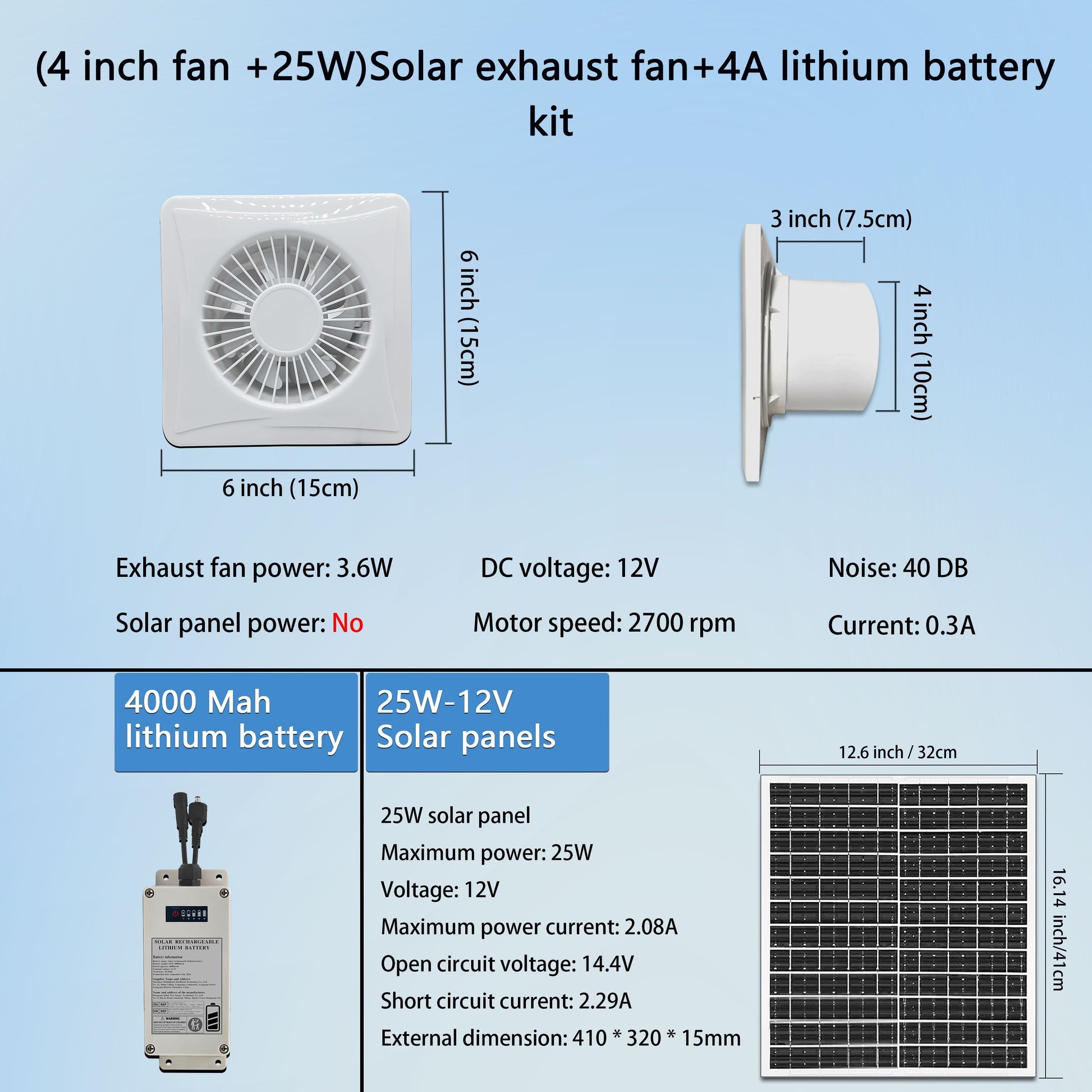 25W Solar-Powered Exhaust Fan with 4000mAh Battery for Greenhouses Sheds Chicken Coops Pet Houses